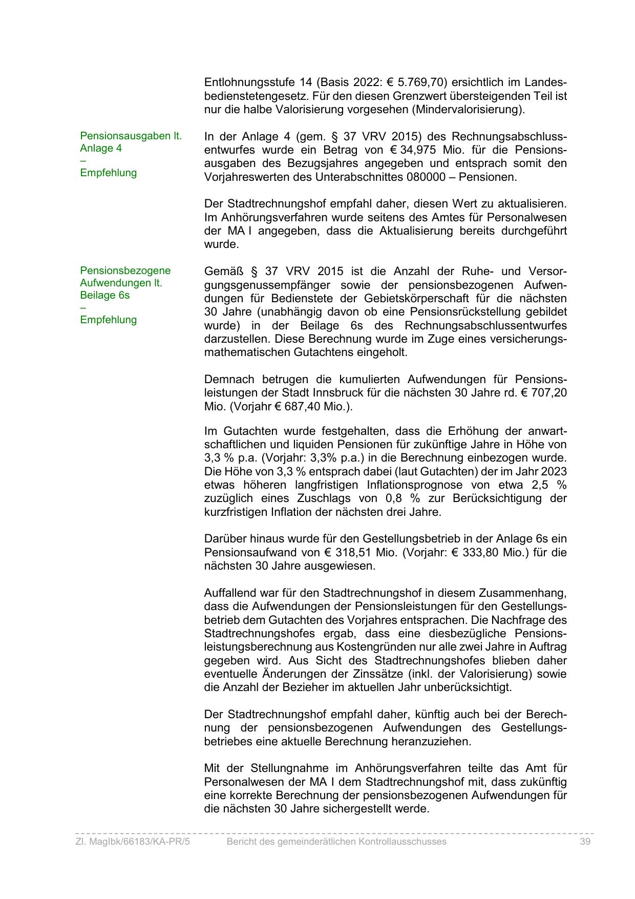 Stadtrechnungshofes ergab, dass eine diesbezügliche Pensionsleistungsberechnung aus Kostengründen nur alle zwei Jahre in Auftrag