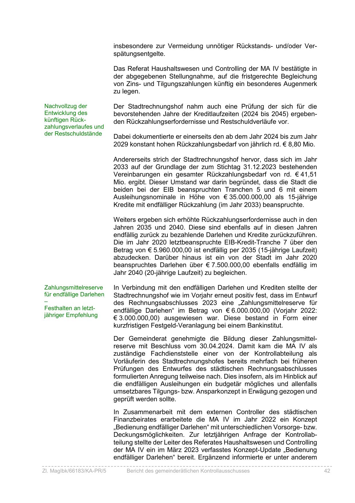 Vereinbarungen ein gesamter Rückzahlungsbedarf von rd. € 41,51