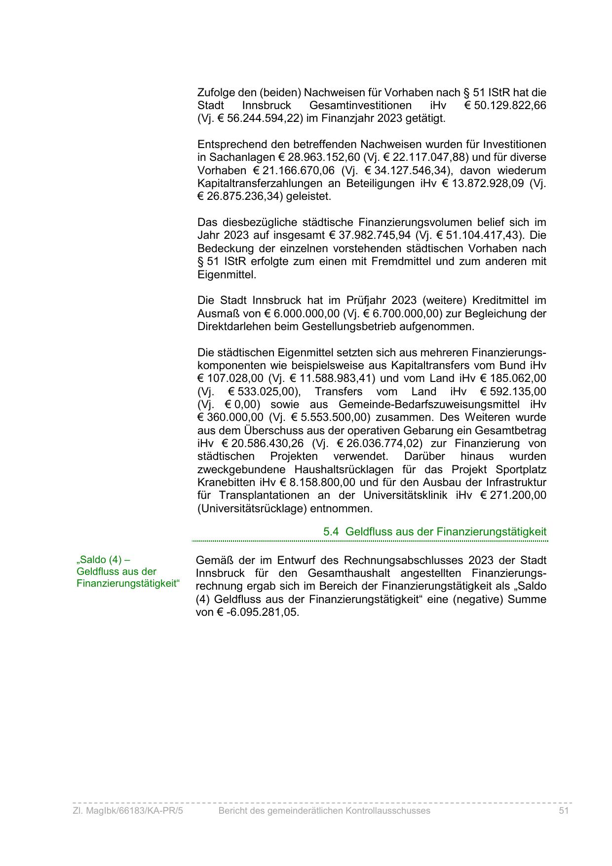 Innsbruck für den Gesamthaushalt angestellten Finanzierungsrechnung ergab sich im Bereich der Finanzierungstätigkeit als „Saldo