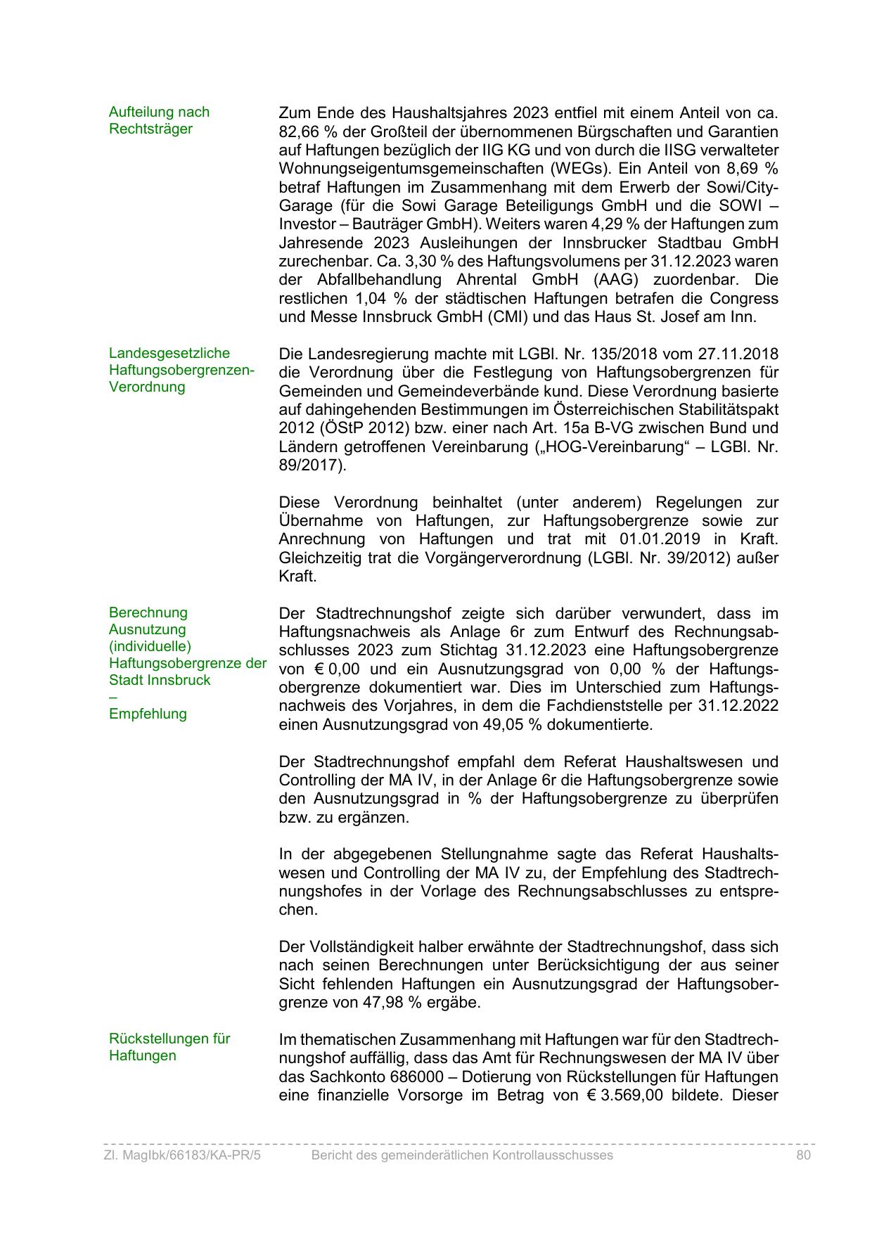Haftungsnachweis als Anlage 6r zum Entwurf des Rechnungsabschlusses 2023 zum Stichtag 31.12.2023 eine Haftungsobergrenze