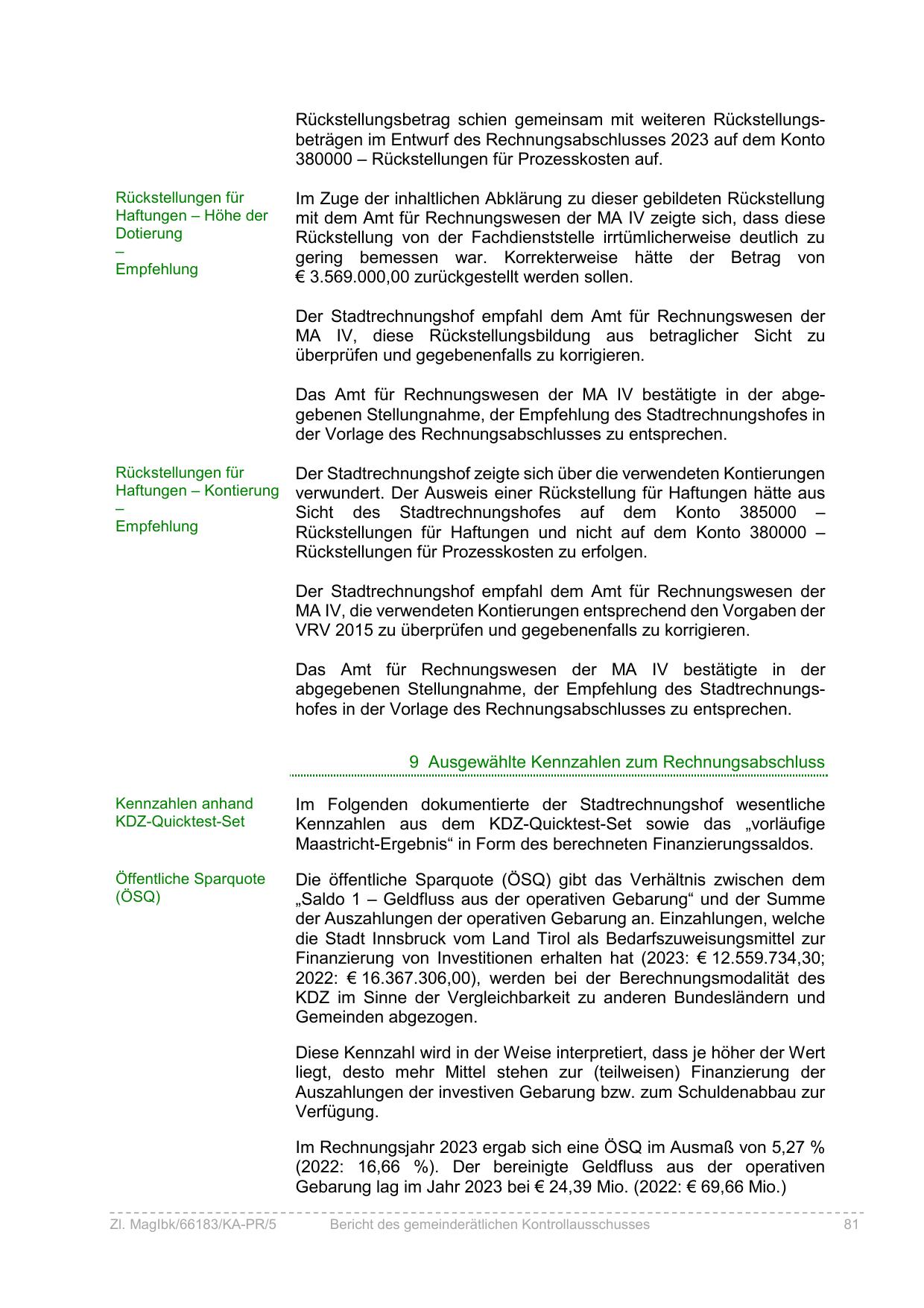 Im Folgenden dokumentierte der Stadtrechnungshof wesentliche