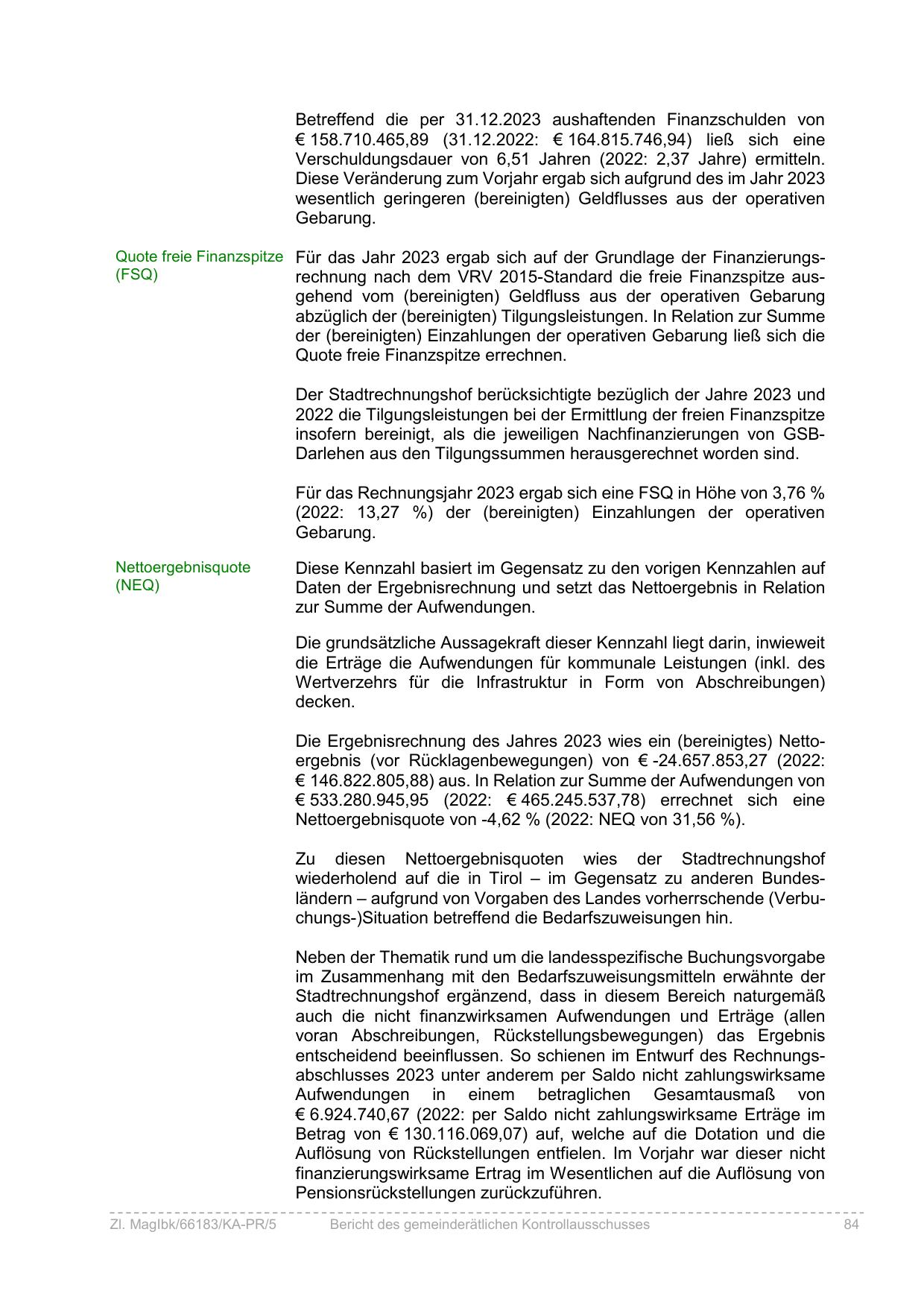 Zu diesen Nettoergebnisquoten wies der Stadtrechnungshof