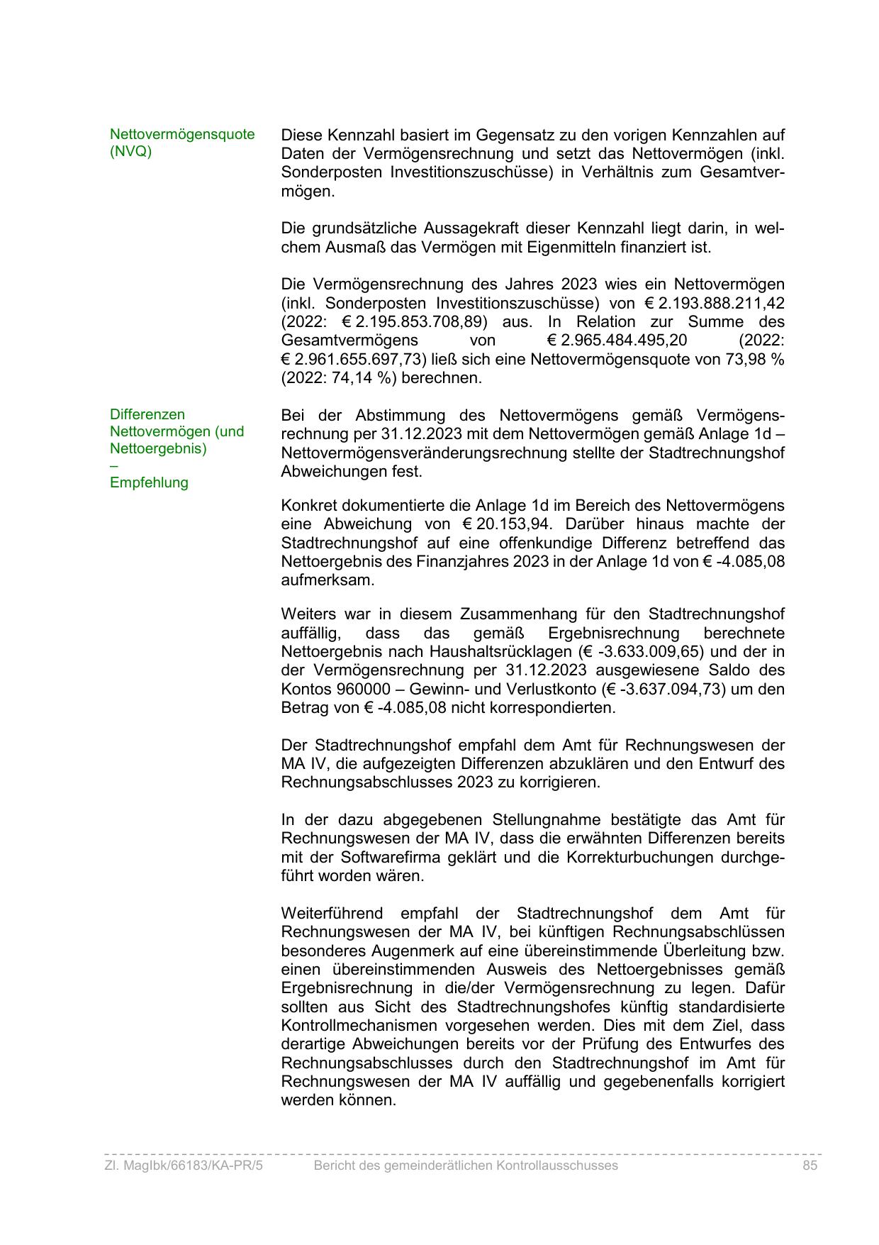 Nettovermögensveränderungsrechnung stellte der Stadtrechnungshof
