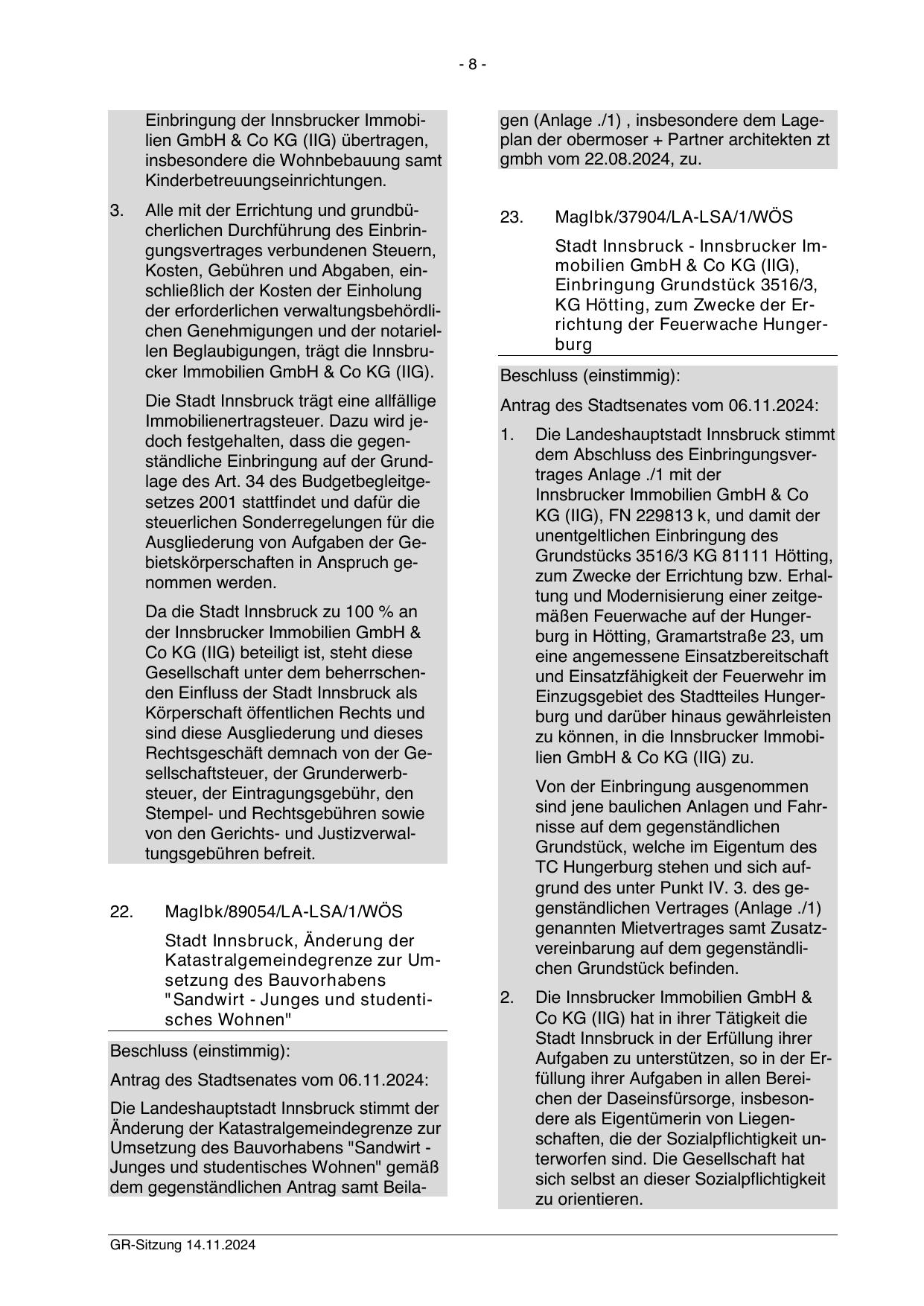 Einbringung der Innsbrucker Immobilien GmbH & Co KG (IIG) übertragen,