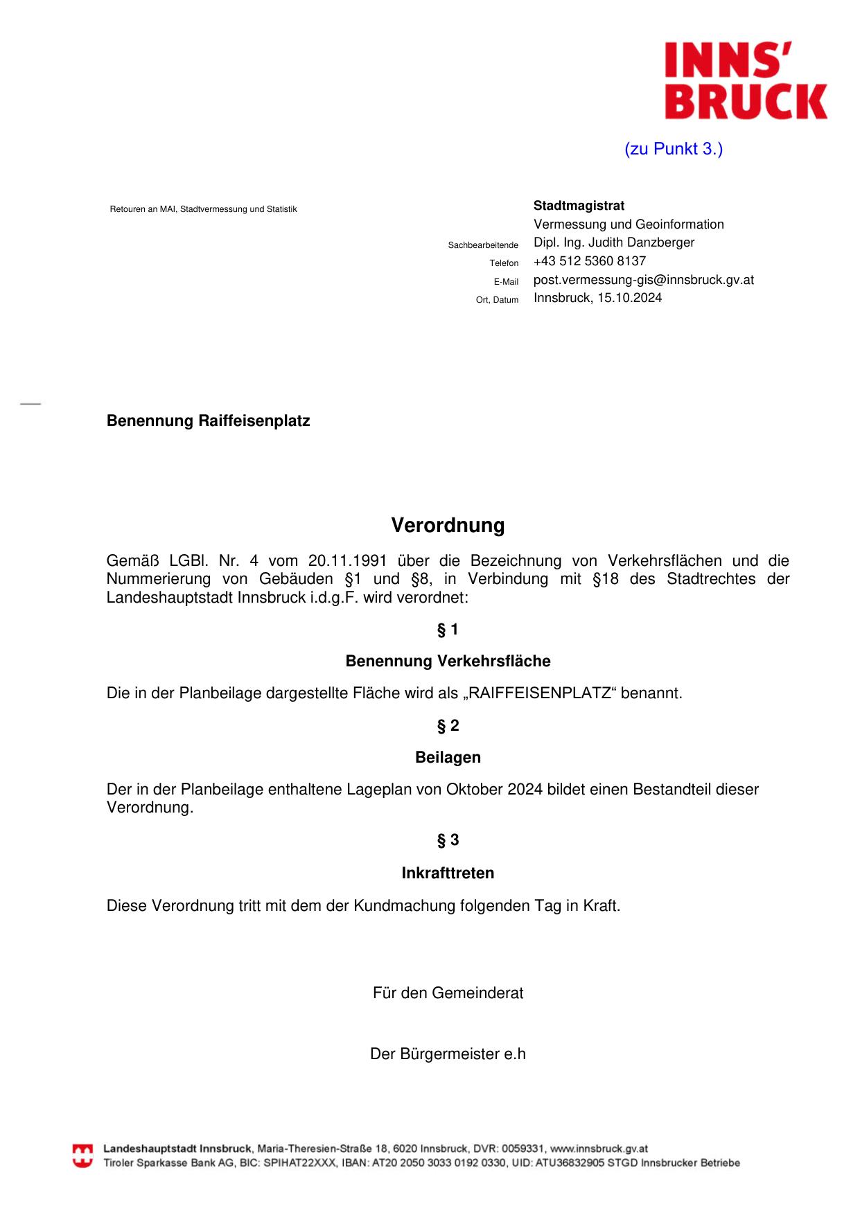 Landeshauptstadt Innsbruck i.d.g.F. wird verordnet: