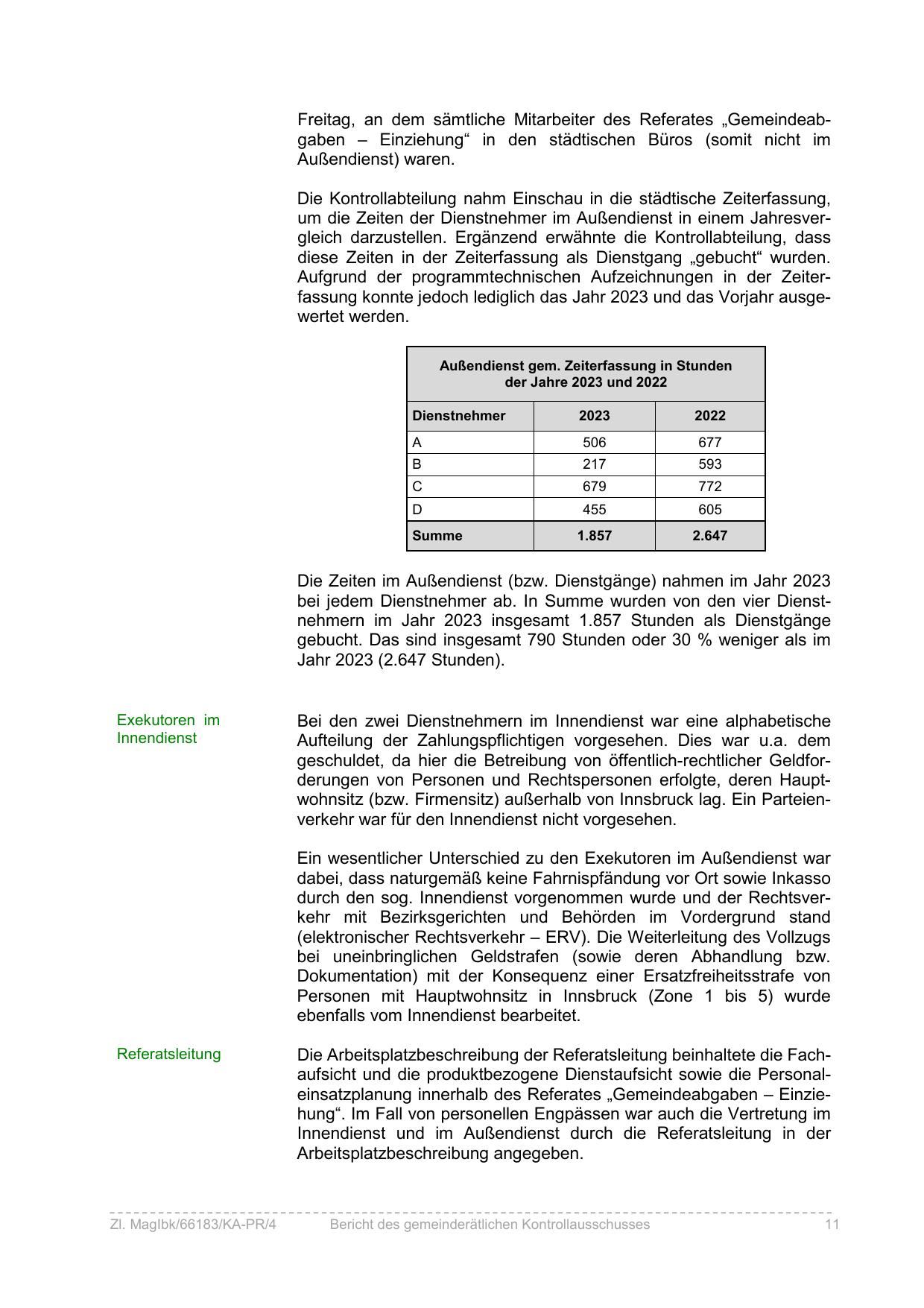 Aufgrund der programmtechnischen Aufzeichnungen in der Zeiterfassung konnte jedoch lediglich das Jahr 2023 und das Vorjahr ausgewertet werden.