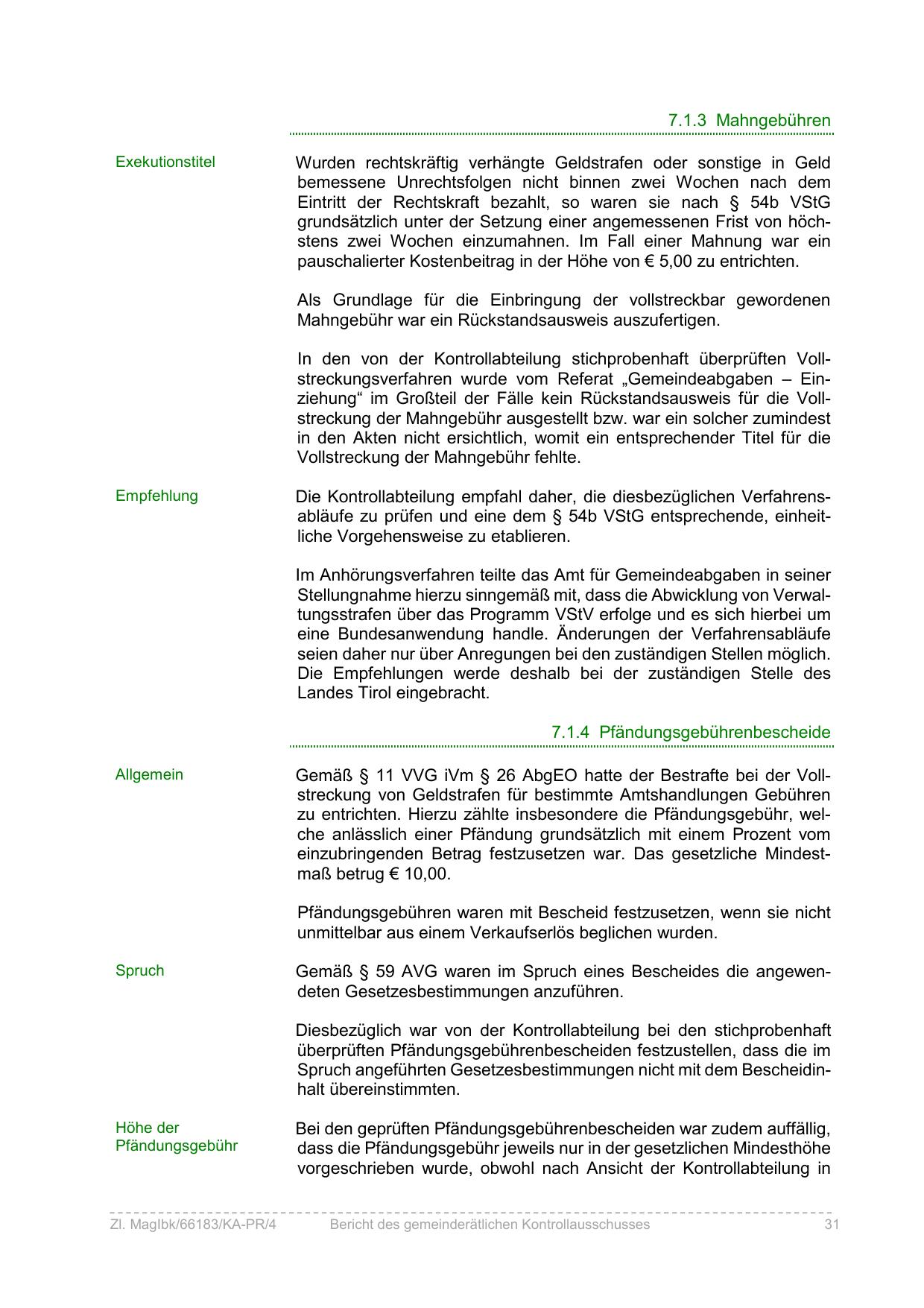 In den von der Kontrollabteilung stichprobenhaft überprüften Vollstreckungsverfahren wurde vom Referat „Gemeindeabgaben – Einziehung“ im Großteil der Fälle kein Rückstandsausweis für die Vollstreckung der Mahngebühr ausgestellt bzw. war ein solcher zumindest