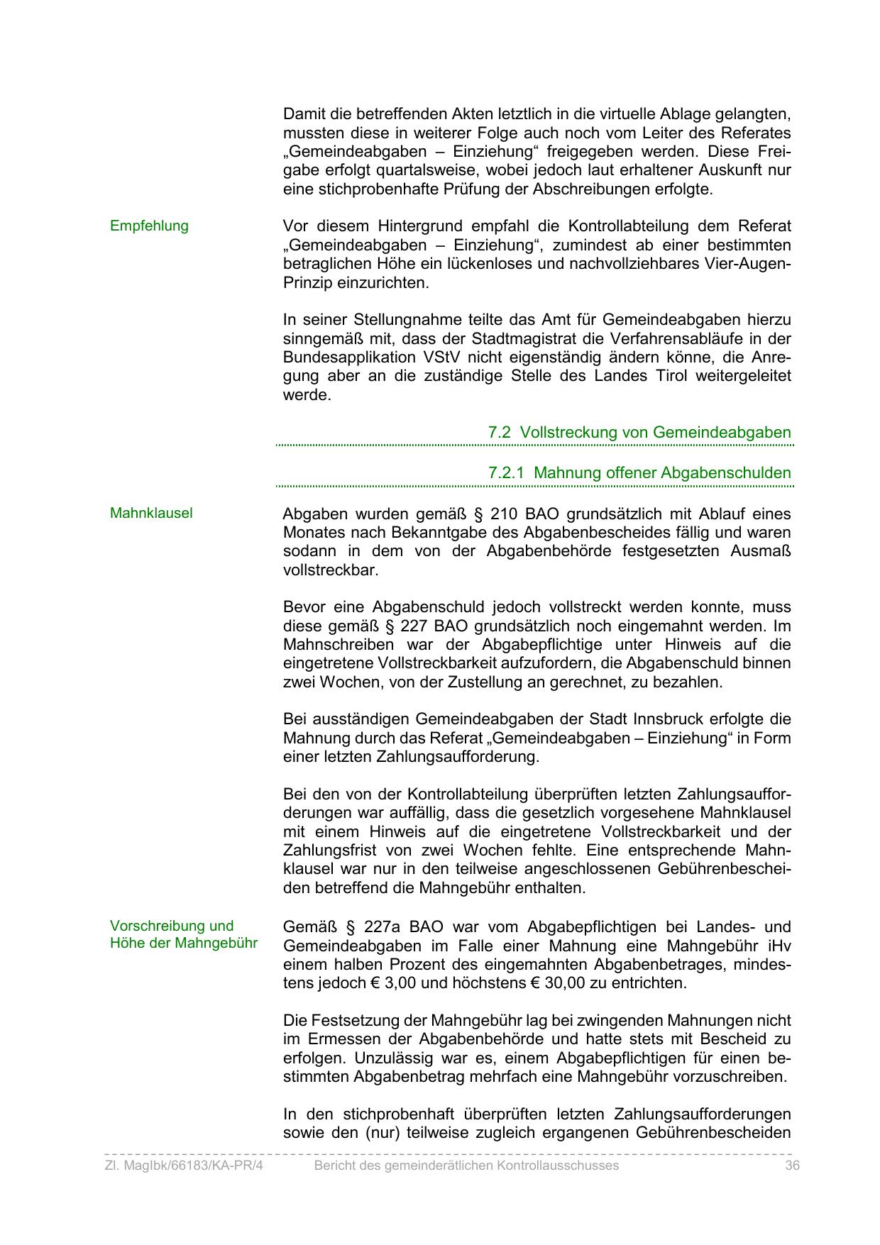7.2.1 Mahnung offener Abgabenschulden