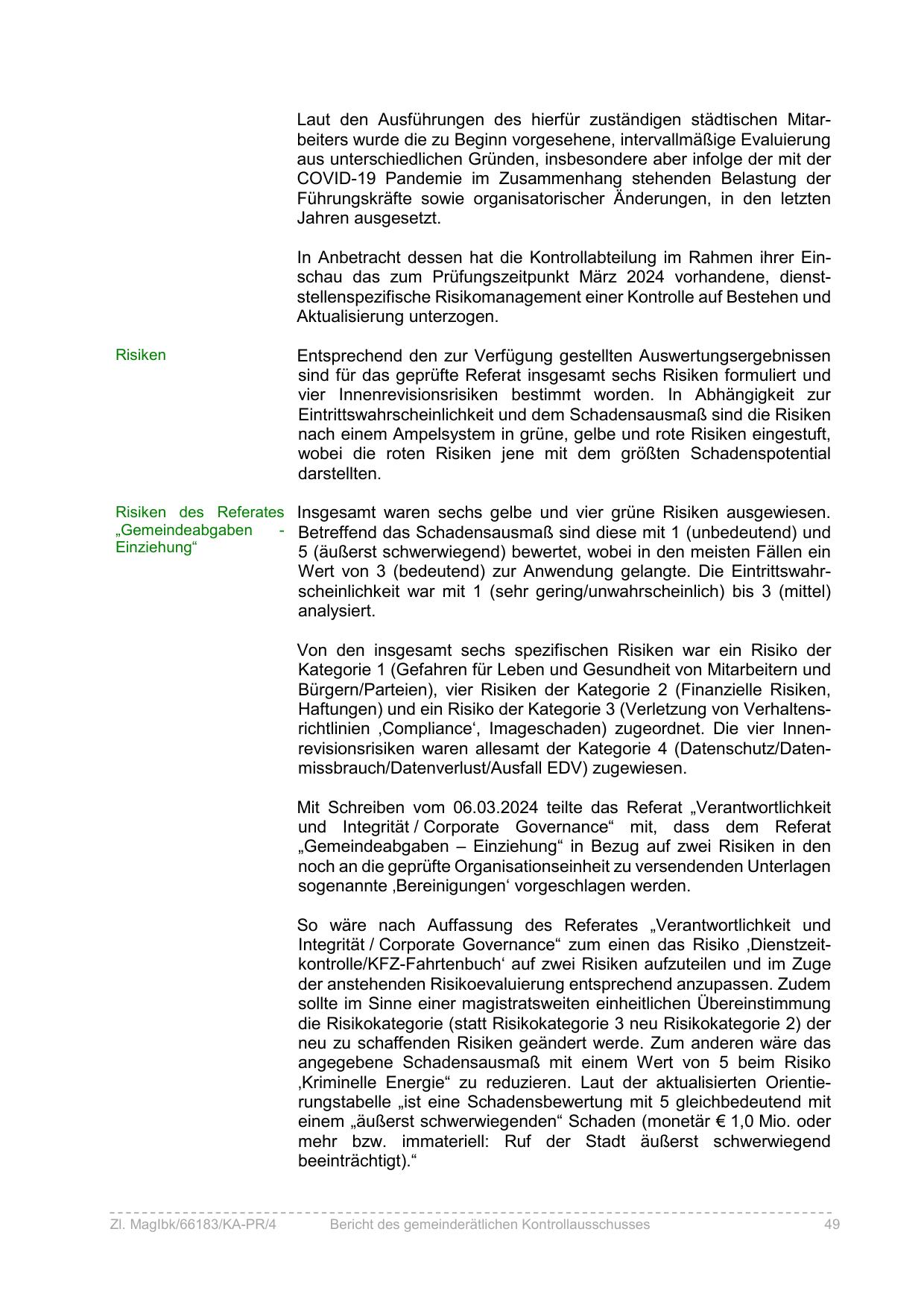 „Gemeindeabgaben – Einziehung“ in Bezug auf zwei Risiken in den