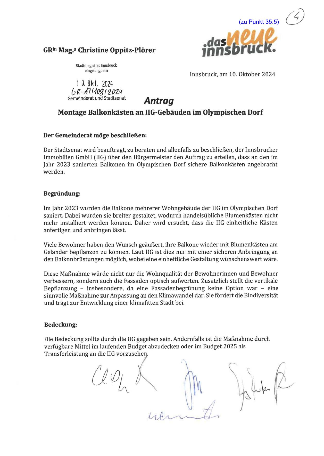 Der Stadtsenat wird beauftragt, zu beraten und allenfalls zu beschließen, der Innsbrucker