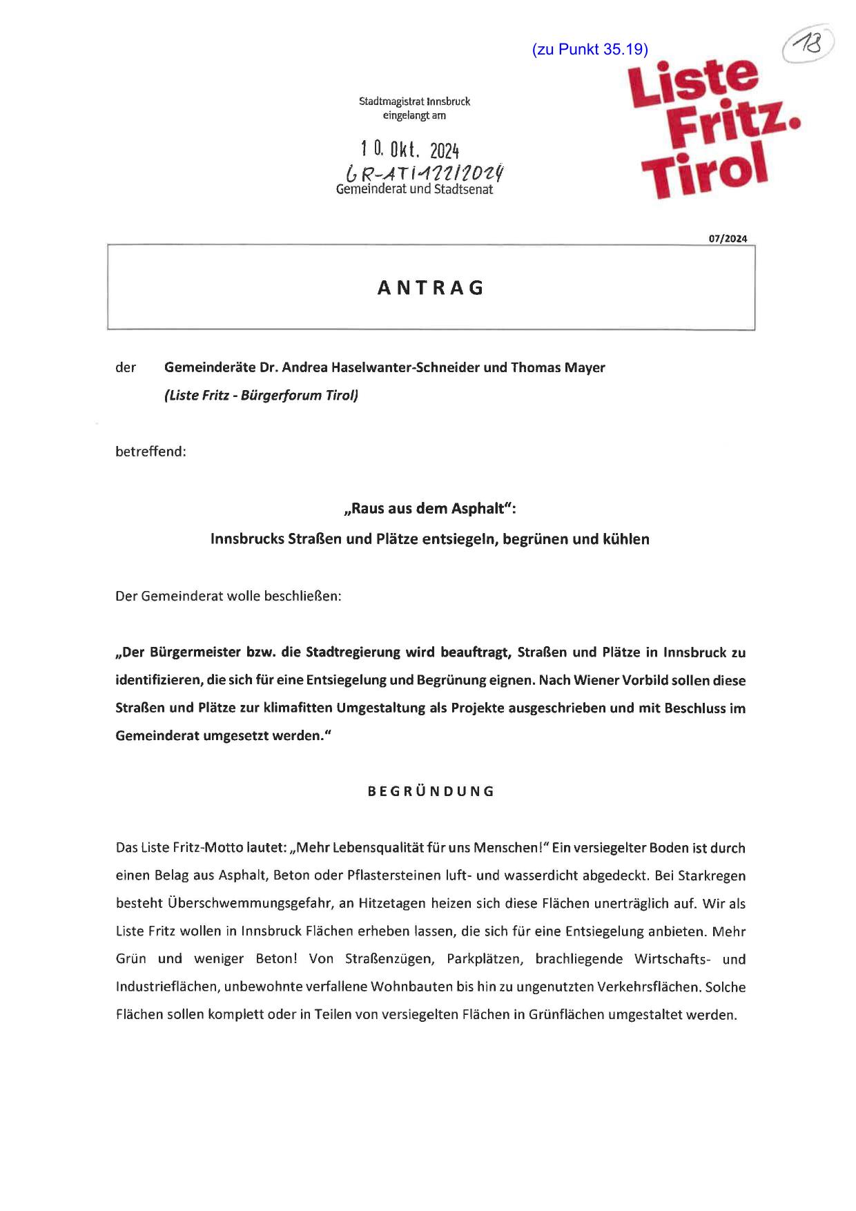 „Der Bürgermeister bzw. die Stadtregierung wird beauftragt, Straßen und Plätze in Innsbruck zu