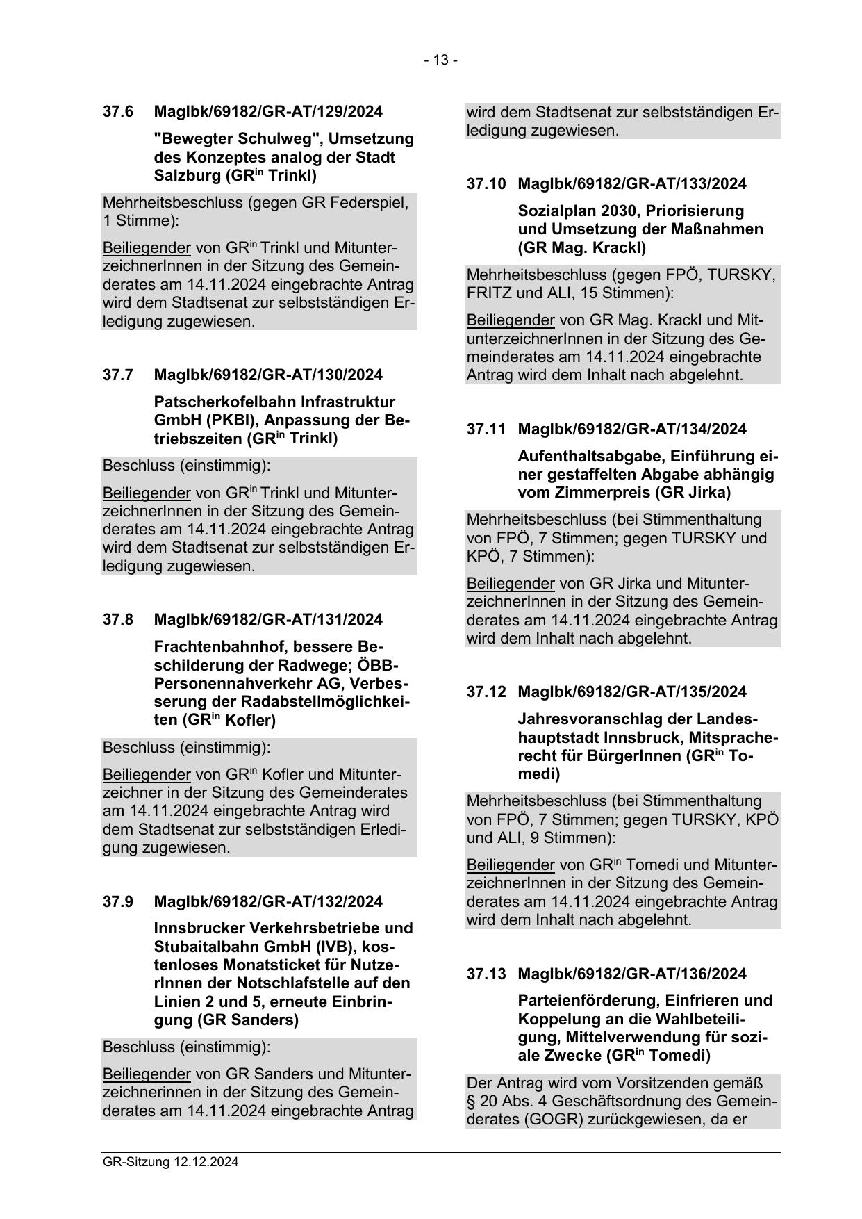 Beiliegender von GR Sanders und Mitunterzeichnerinnen in der Sitzung des Gemeinderates am 14.11.2024 eingebrachte Antrag