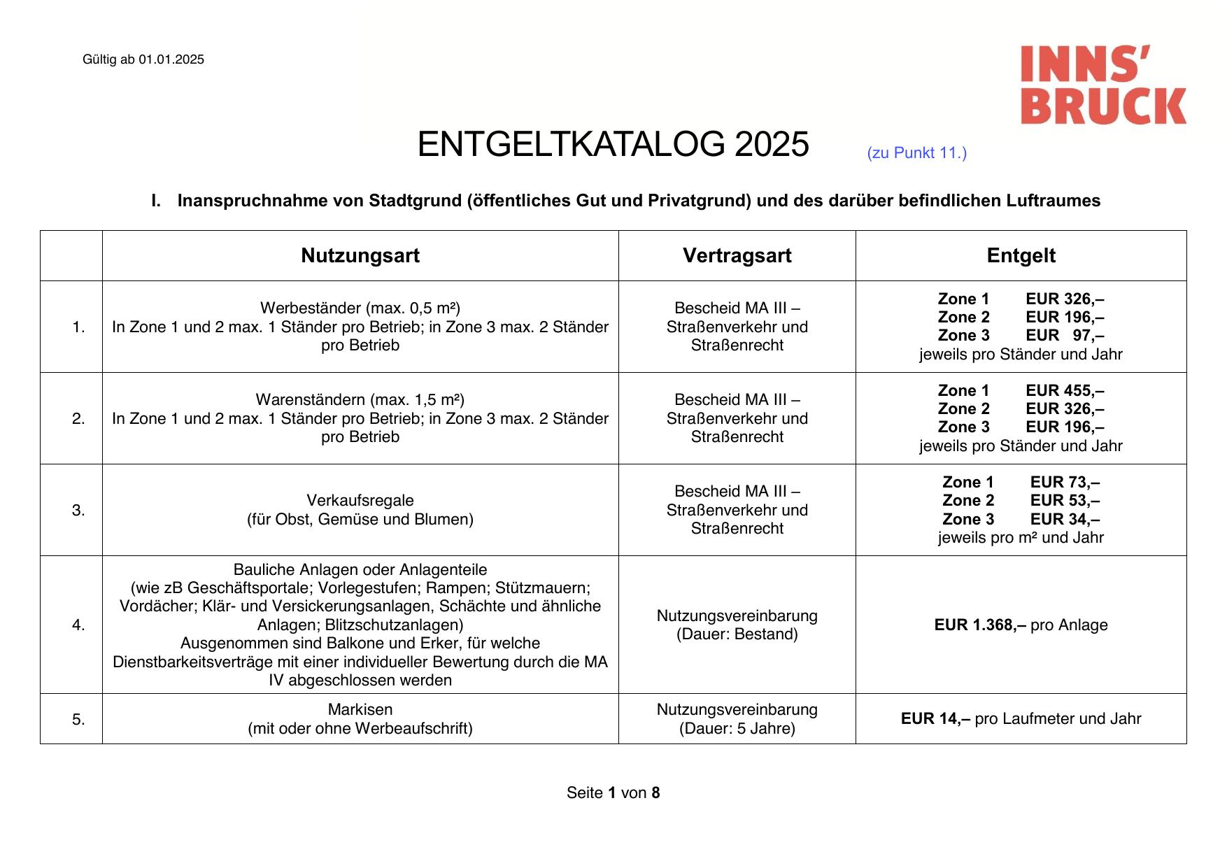 I. Inanspruchnahme von Stadtgrund (öffentliches Gut und Privatgrund) und des darüber befindlichen Luftraumes