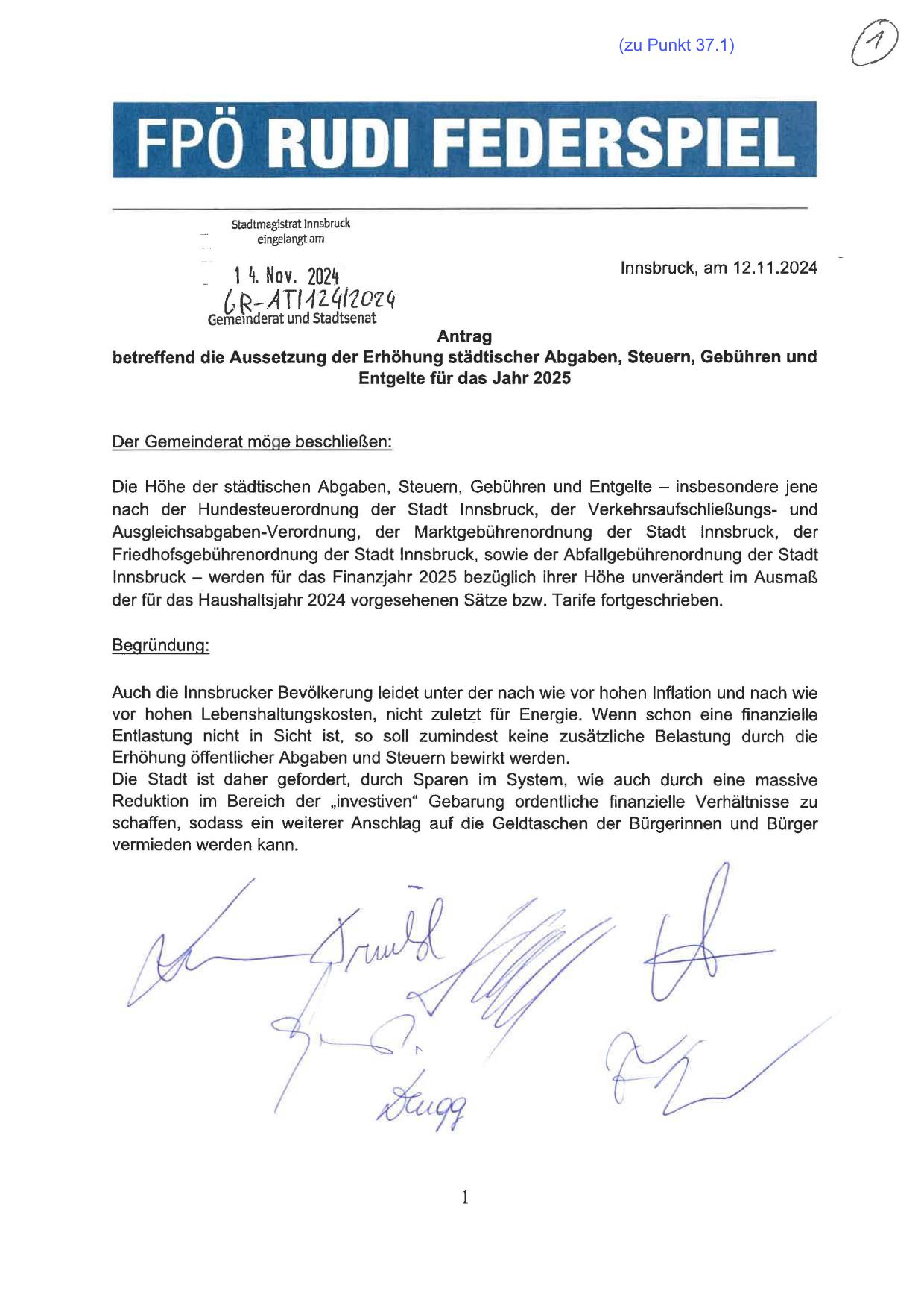 Innsbruck - werden für das Finanzjahr 2025 bezüglich ihrer Höhe unverändert im Ausmaß