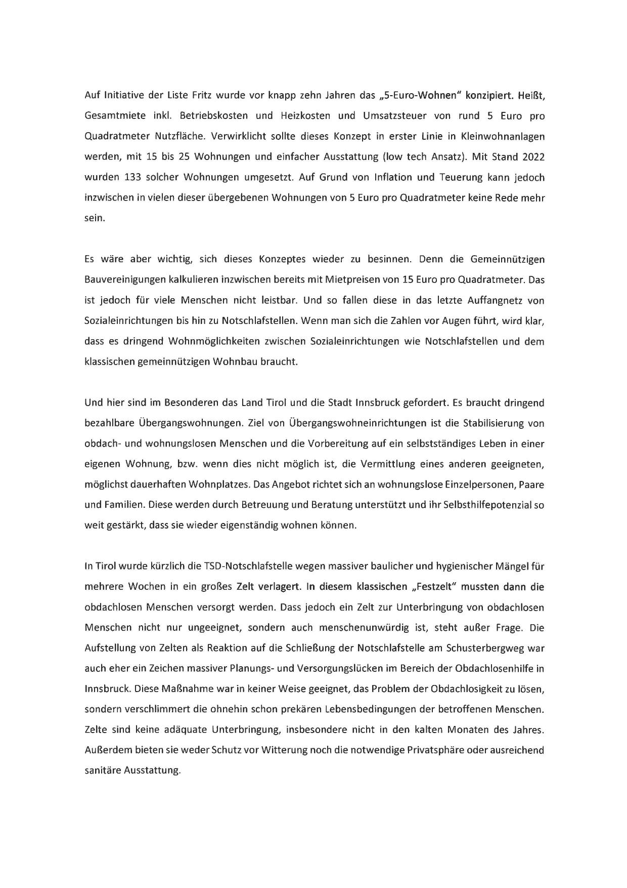 Innsbruck. Diese Maßnahme war in keiner Weise geeignet, das Problem der Obdachlosigkeit zu lösen,
