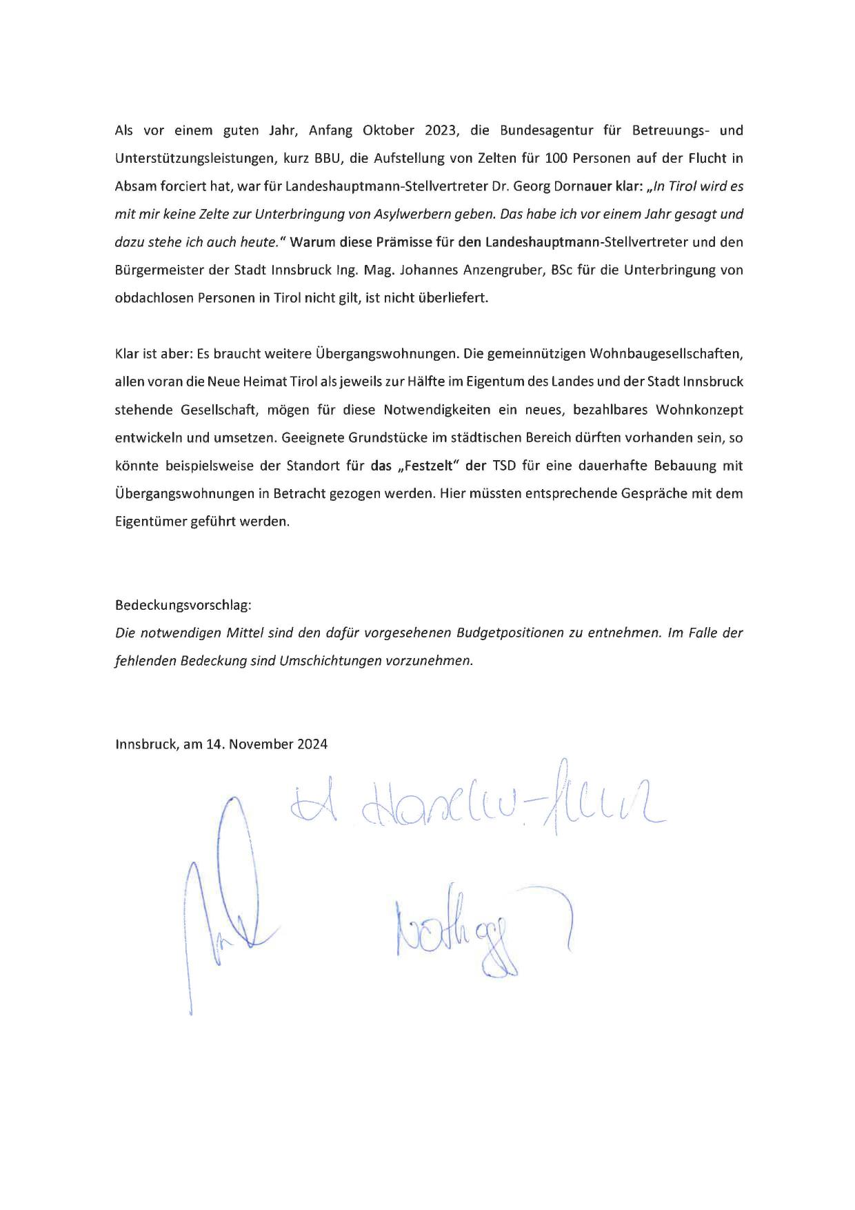 Bürgermeister der Stadt Innsbruck Ing. Mag. Johannes Anzengruber, BSc für die Unterbringung von