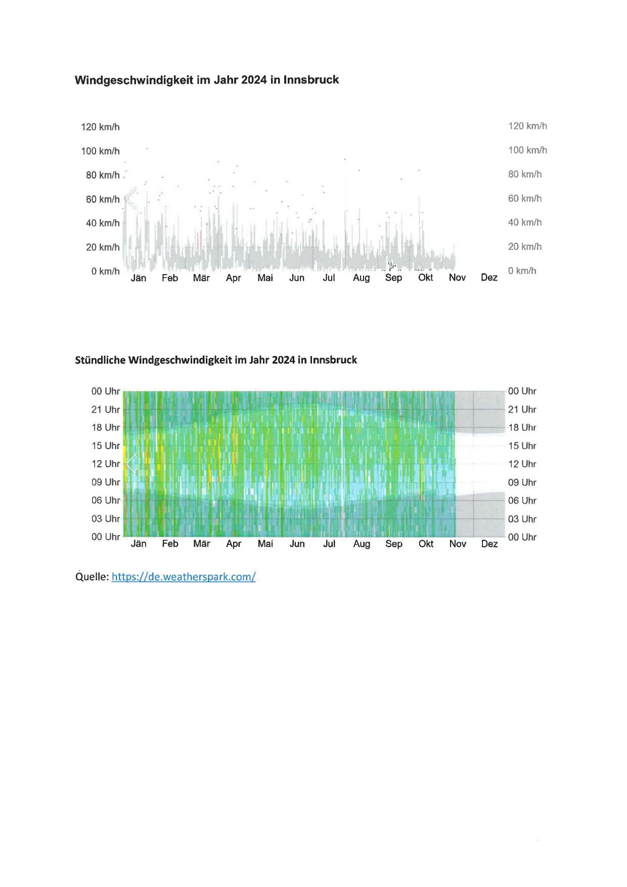 Windgeschwindigkeit im Jahr 2024 in Innsbruck