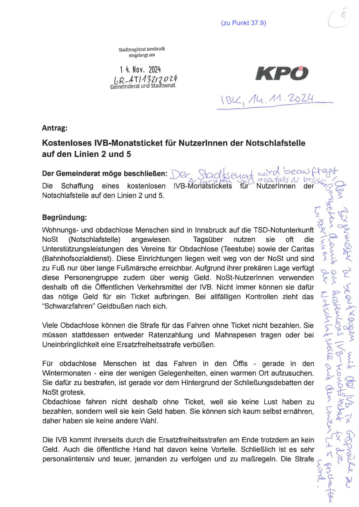 Kostenloses IVB-Monatsticket für Nutzerinnen der Notschlafstelle
