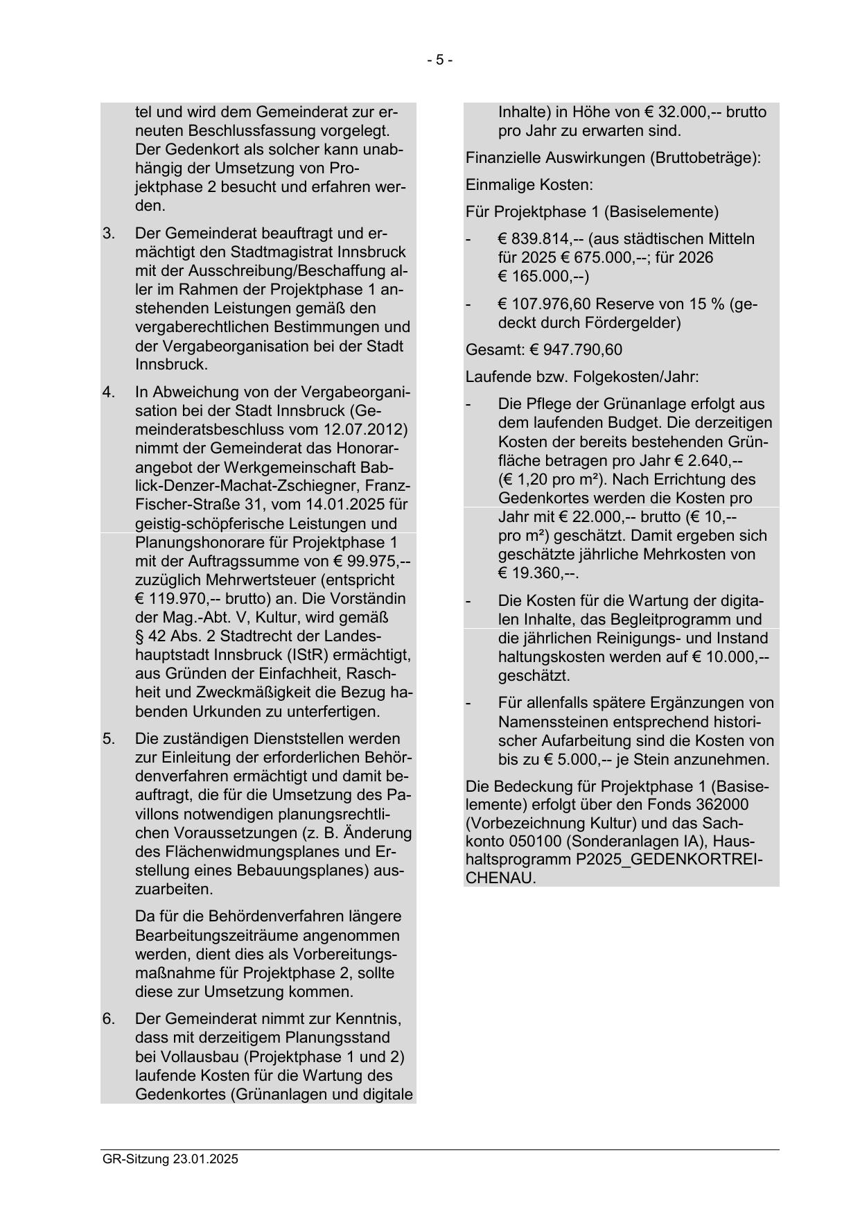 Der Gemeinderat beauftragt und ermächtigt den Stadtmagistrat Innsbruck