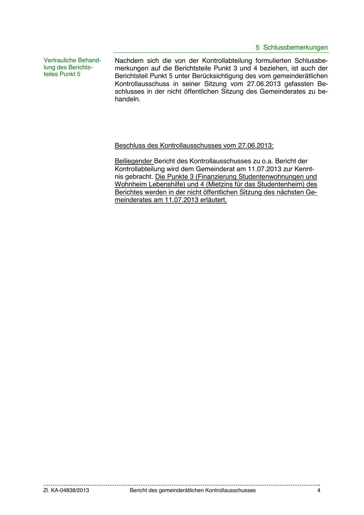 Kontrollabteilung wird dem Gemeinderat am 11.07.2013 zur Kenntnis gebracht. Die Punkte 3 (Finanzierung Studentenwohnungen und