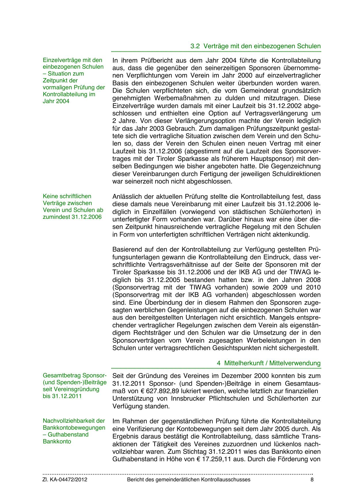 Laufzeit bis 31.12.2006 (abgestimmt auf die Laufzeit des Sponsorvertrages mit der Tiroler Sparkasse als früherem Hauptsponsor) mit denselben Bedingungen wie bisher angeboten hatte. Die Gegenzeichnung
