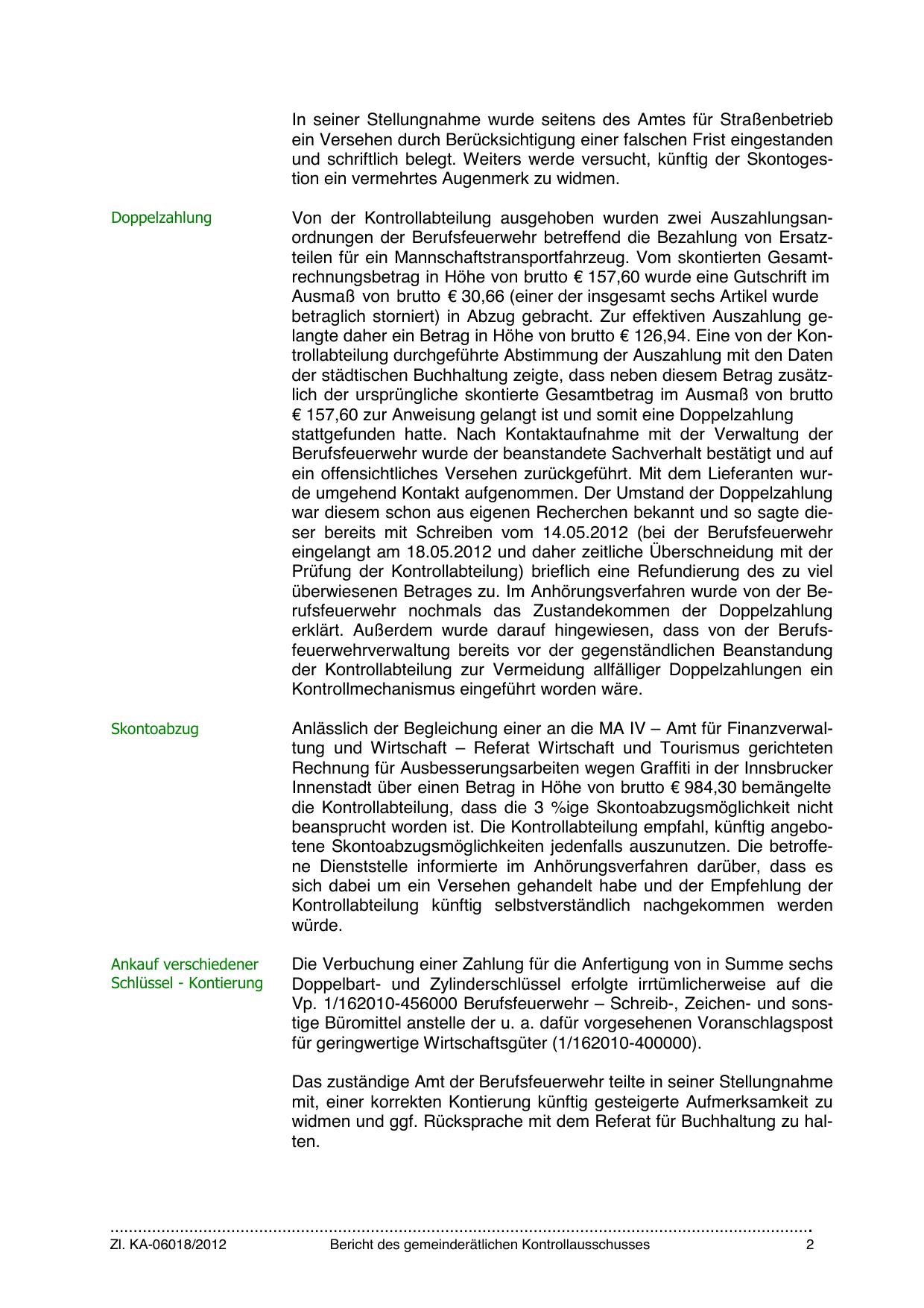 der städtischen Buchhaltung zeigte, dass neben diesem Betrag zusätzlich der ursprüngliche skontierte Gesamtbetrag im Ausmaß von brutto