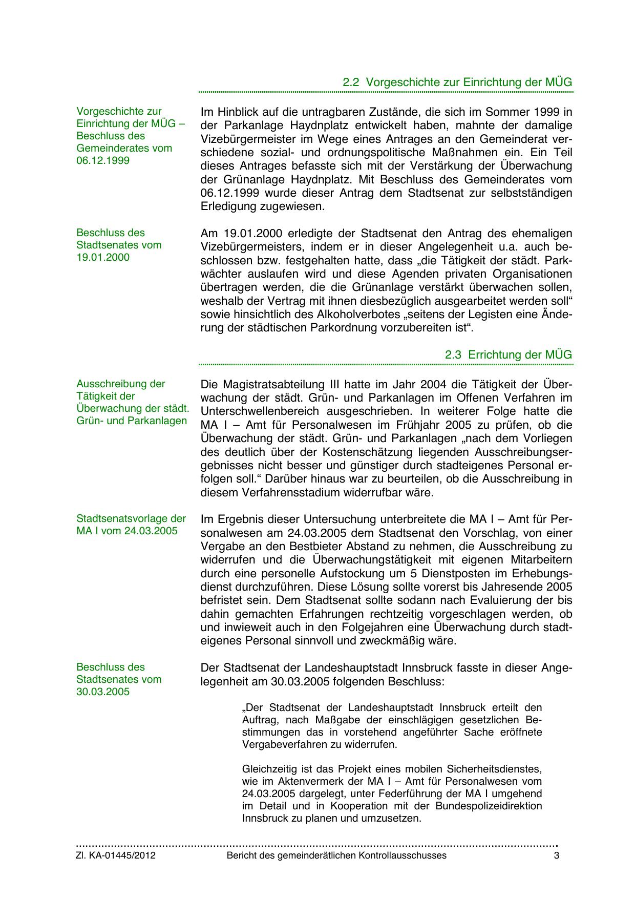 Die Magistratsabteilung III hatte im Jahr 2004 die Tätigkeit der Überwachung der städt. Grün- und Parkanlagen im Offenen Verfahren im