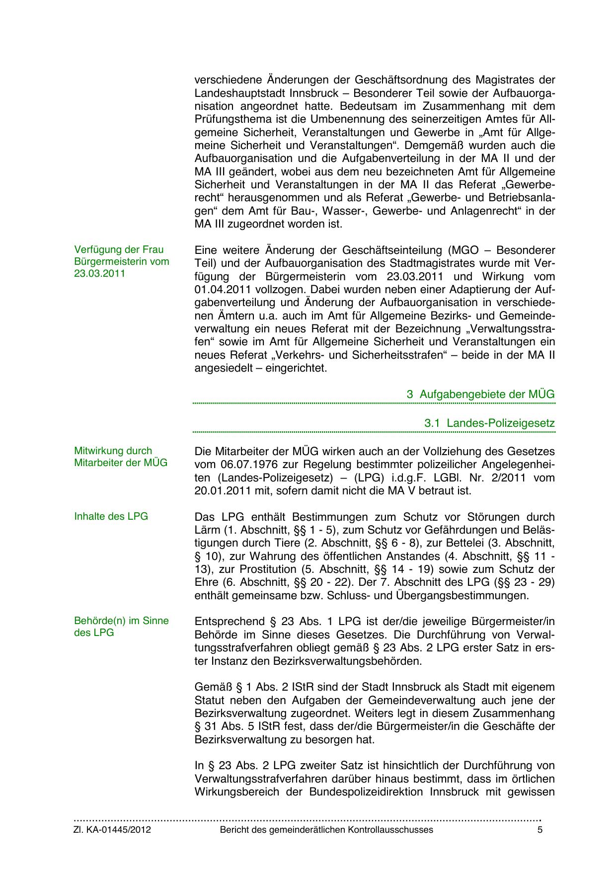 Landeshauptstadt Innsbruck – Besonderer Teil sowie der Aufbauorganisation angeordnet hatte. Bedeutsam im Zusammenhang mit dem