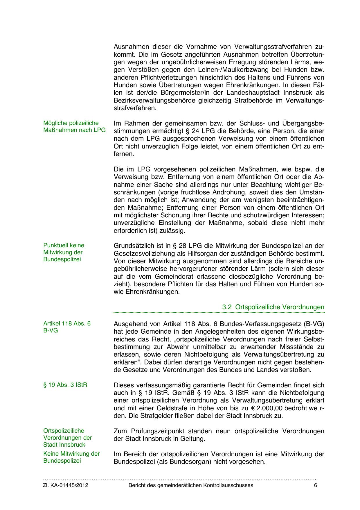 Hunden sowie Übertretungen wegen Ehrenkränkungen. In diesen Fällen ist der/die Bürgermeister/in der Landeshauptstadt Innsbruck als
