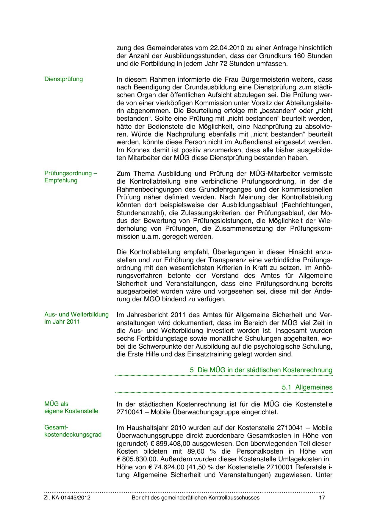 Im Konnex damit ist positiv anzumerken, dass alle bisher ausgebildeten Mitarbeiter der MÜG diese Dienstprüfung bestanden haben.