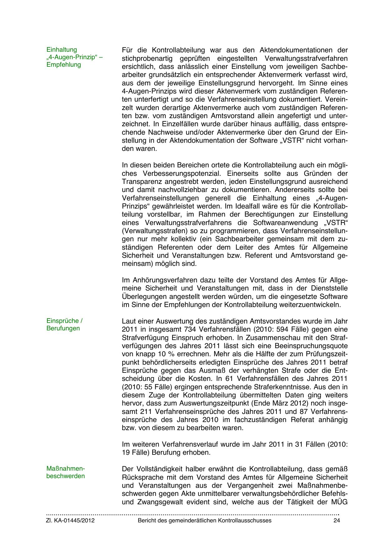 4-Augen-Prinzips wird dieser Aktenvermerk vom zuständigen Referenten unterfertigt und so die Verfahrenseinstellung dokumentiert. Vereinzelt wurden derartige Aktenvermerke auch vom zuständigen Referenten bzw. vom zuständigen Amtsvorstand allein angefertigt und unterzeichnet. In Einzelfällen wurde darüber hinaus auffällig, dass entsprechende Nachweise und/oder Aktenvermerke über den Grund der Einstellung in der Aktendokumentation der Software „VSTR“ nicht vorhanden waren.