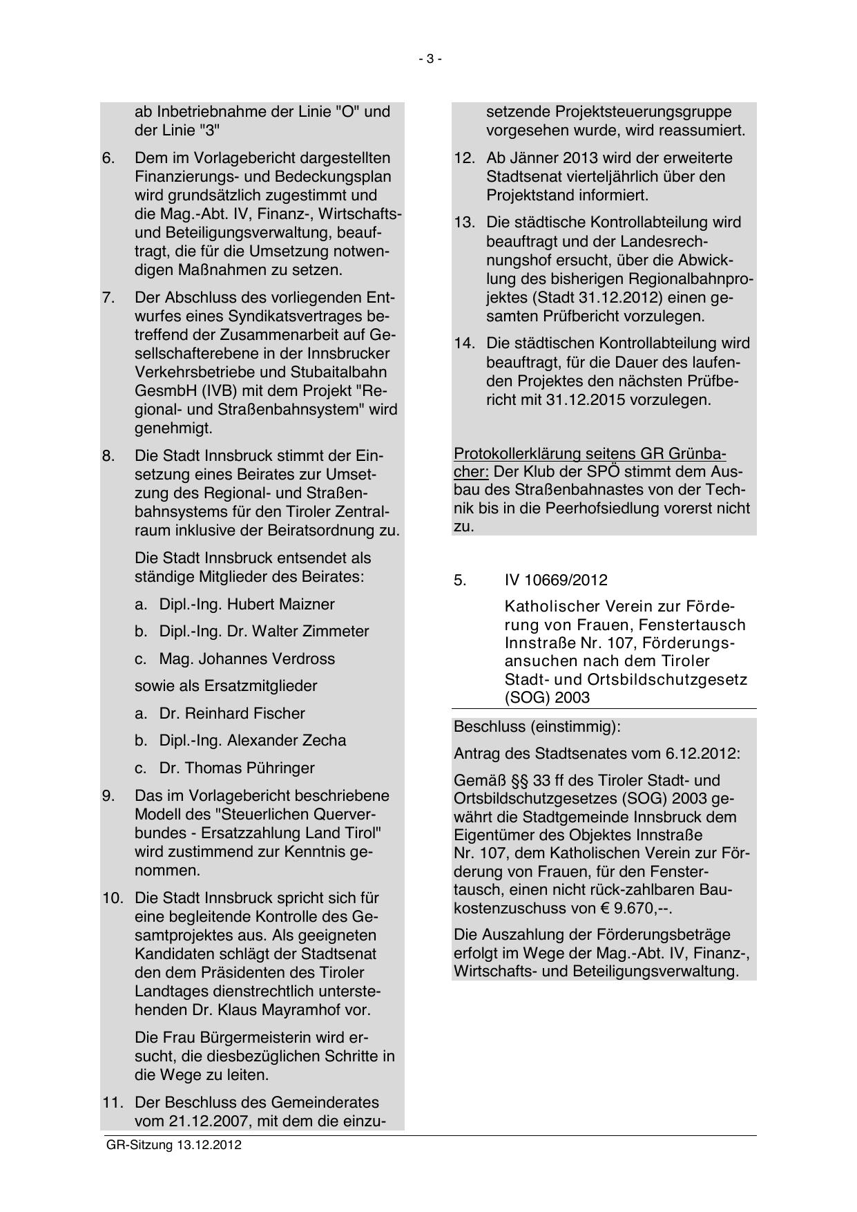 Antrag des Stadtsenates vom 6.12.2012: