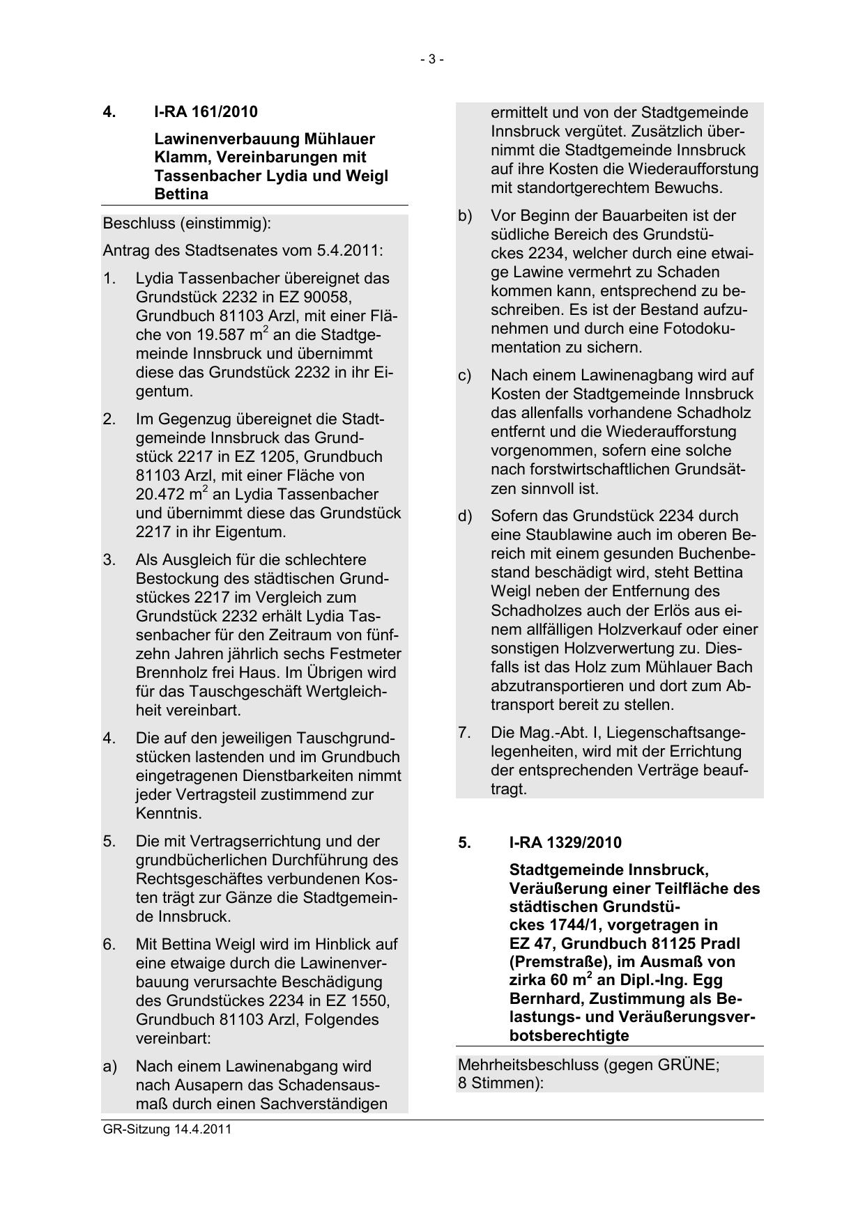 Grundbuch 81103 Arzl, mit einer Fläche von 19.587 m2 an die Stadtgemeinde Innsbruck und übernimmt