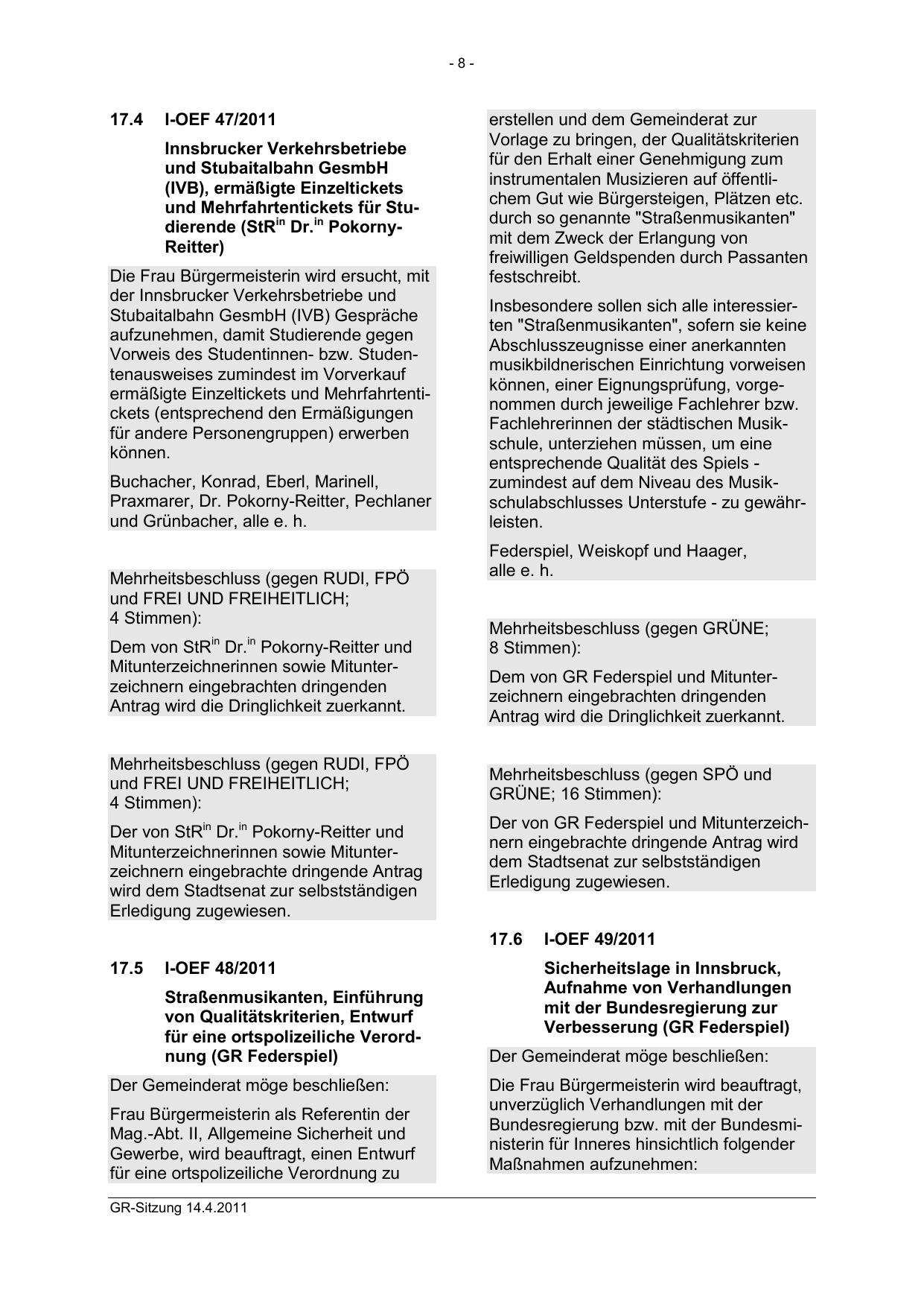 Dem von GR Federspiel und Mitunterzeichnern eingebrachten dringenden