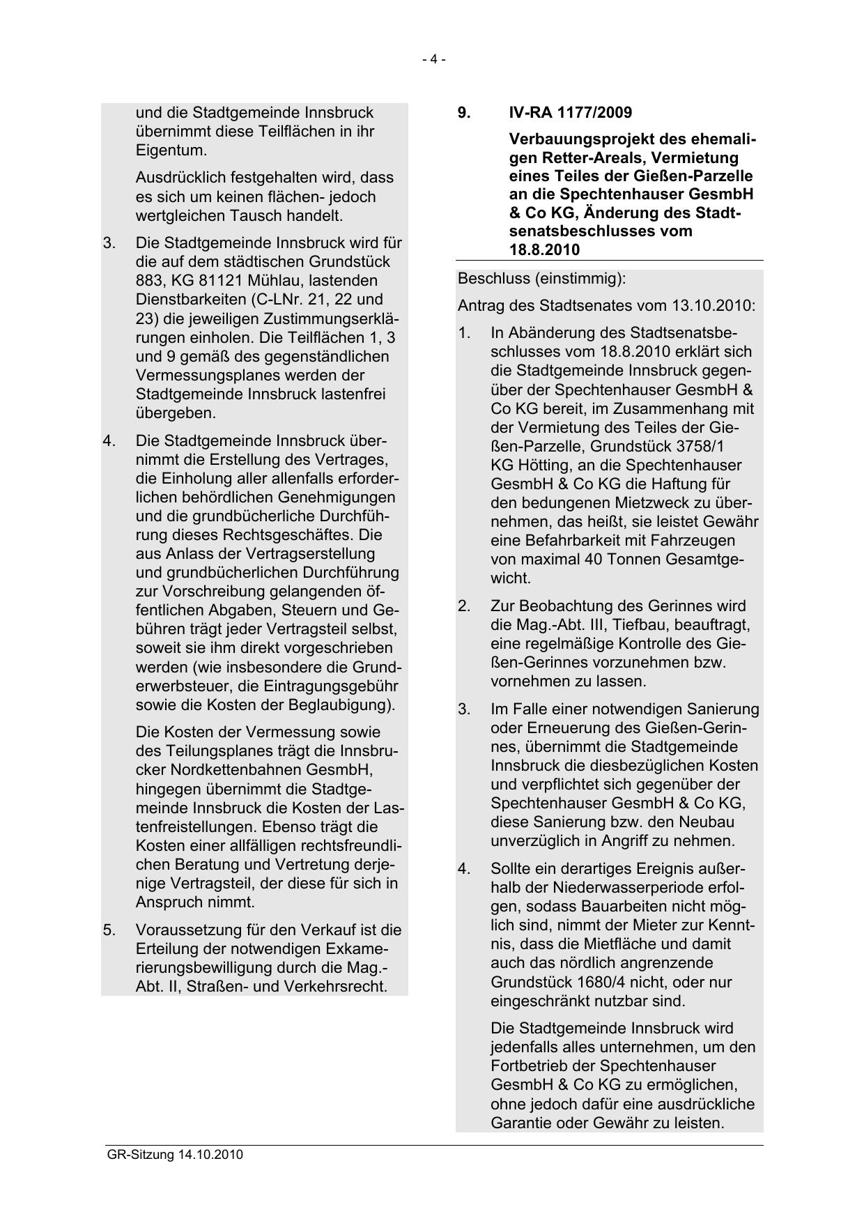 die Stadtgemeinde Innsbruck gegenüber der Spechtenhauser GesmbH &