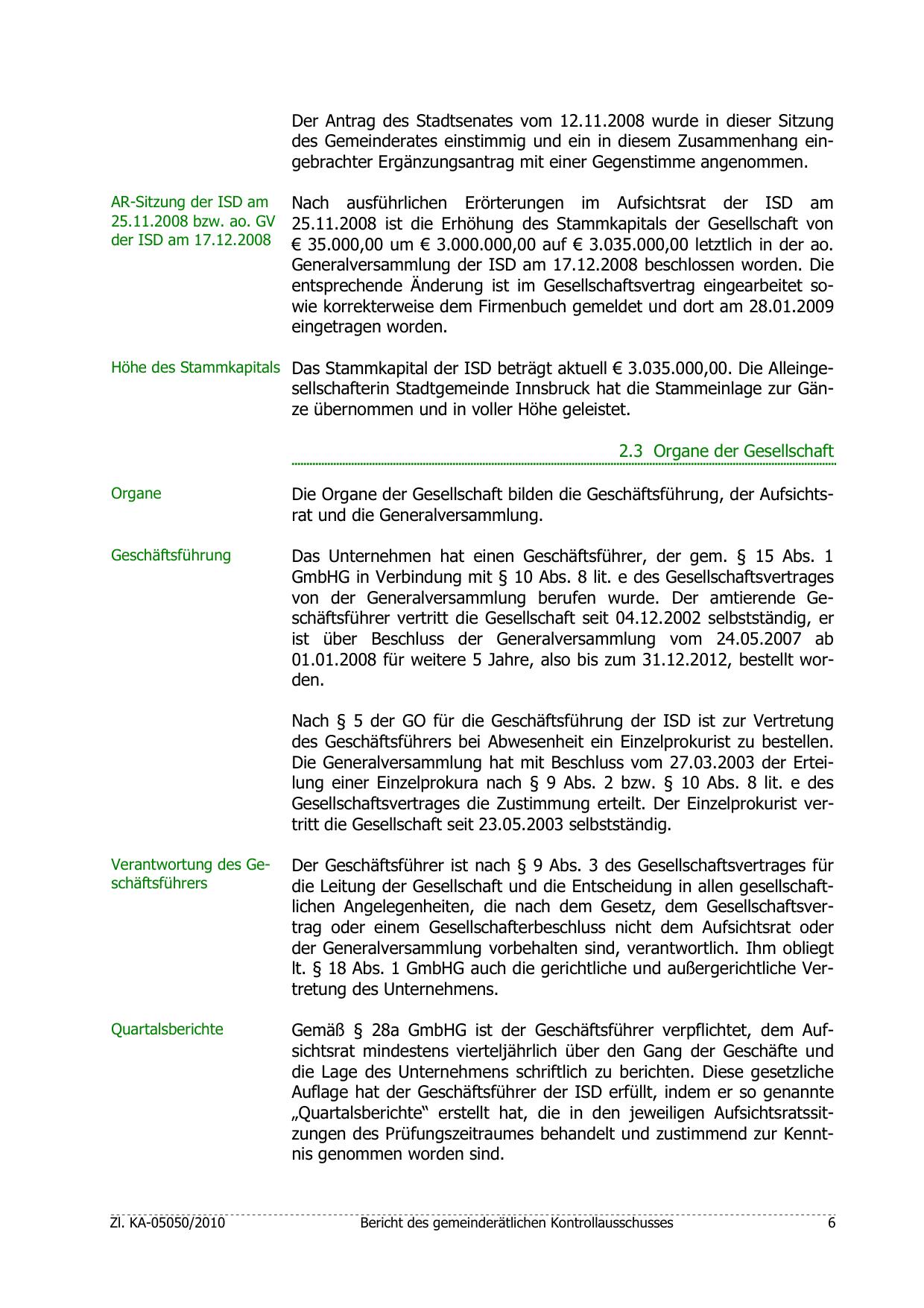 sellschafterin Stadtgemeinde Innsbruck hat die Stammeinlage zur Gänze übernommen und in voller Höhe geleistet.