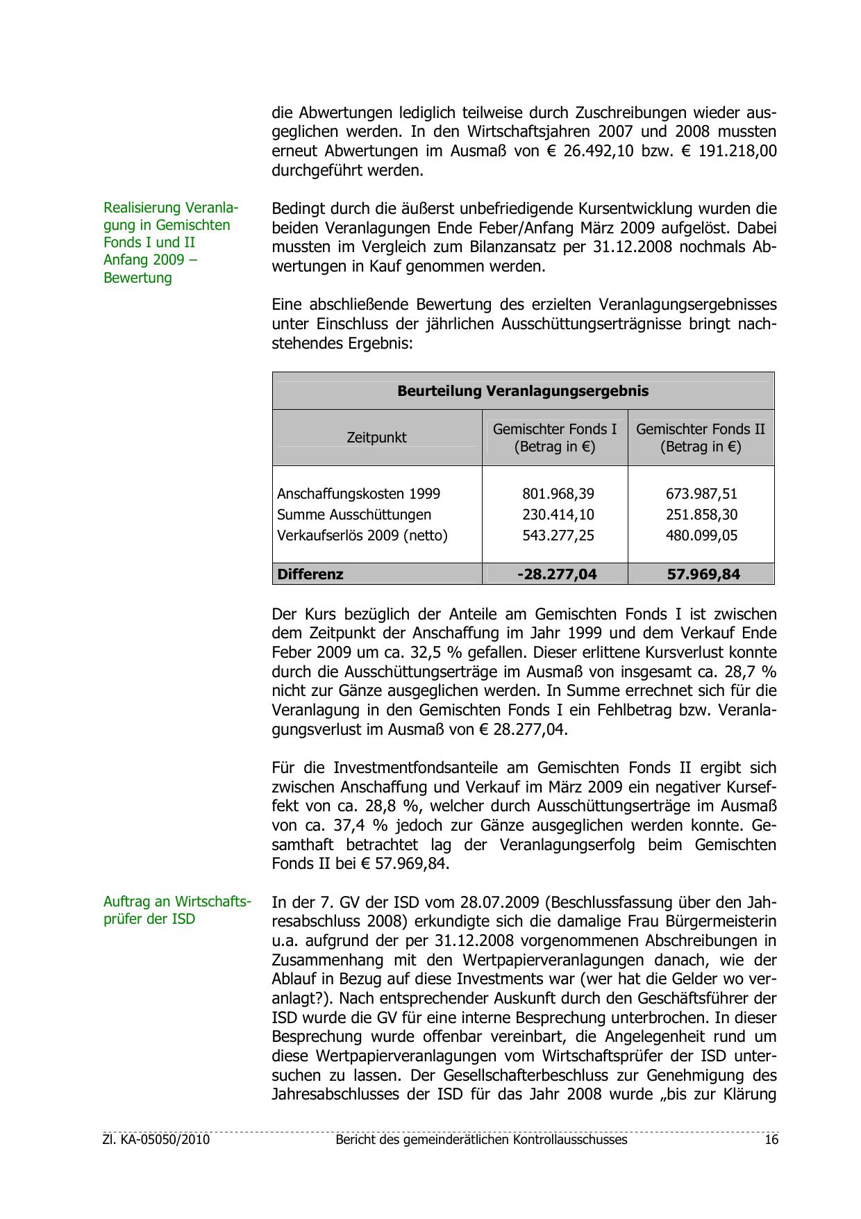 diese Wertpapierveranlagungen vom Wirtschaftsprüfer der ISD untersuchen zu lassen. Der Gesellschafterbeschluss zur Genehmigung des