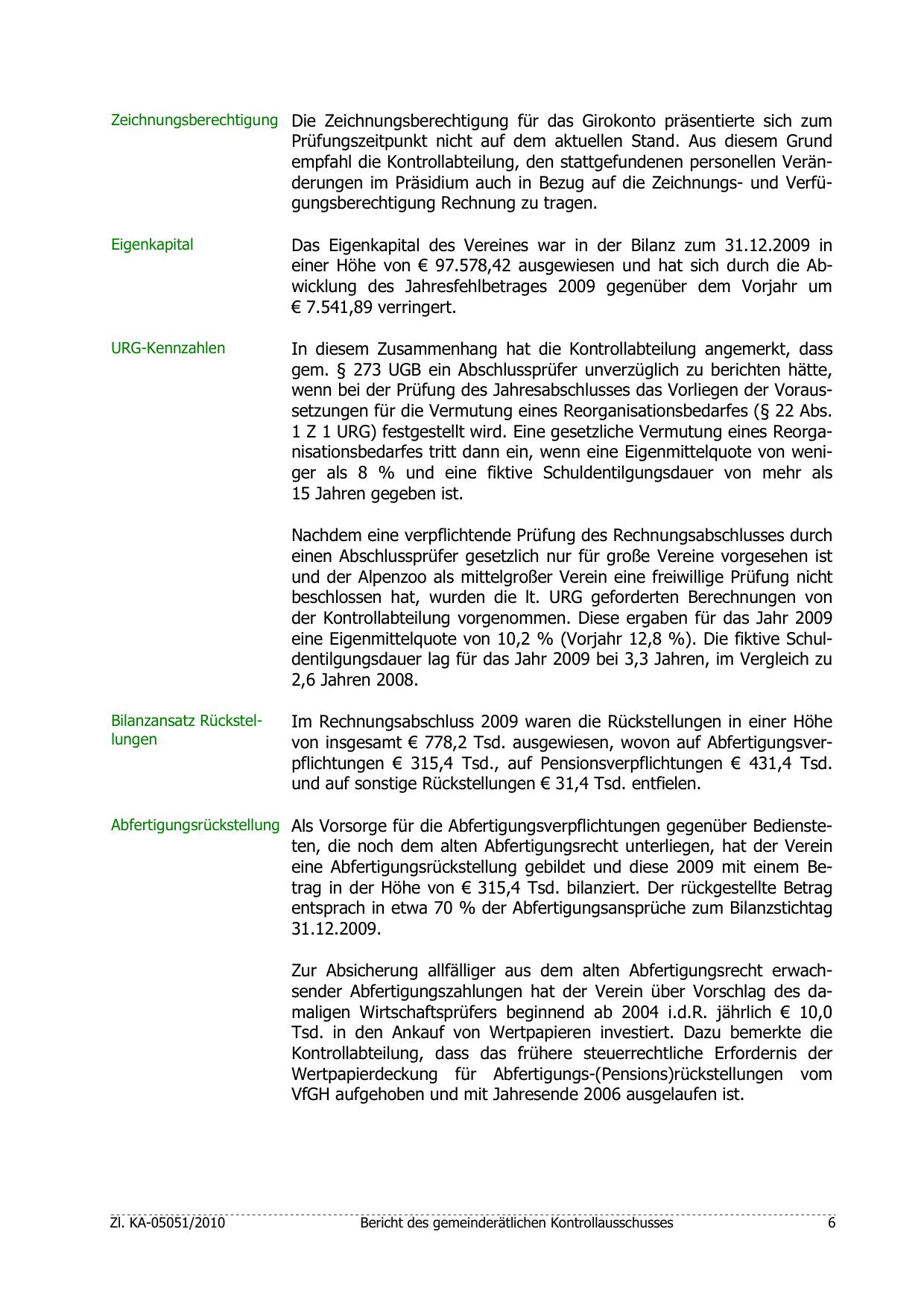 einer Höhe von € 97.578,42 ausgewiesen und hat sich durch die Abwicklung des Jahresfehlbetrages 2009 gegenüber dem Vorjahr um