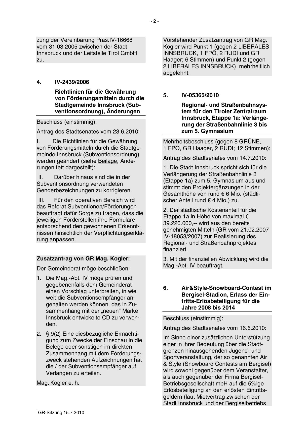 2 LIBERALES INNSBRUCK) mehrheitlich