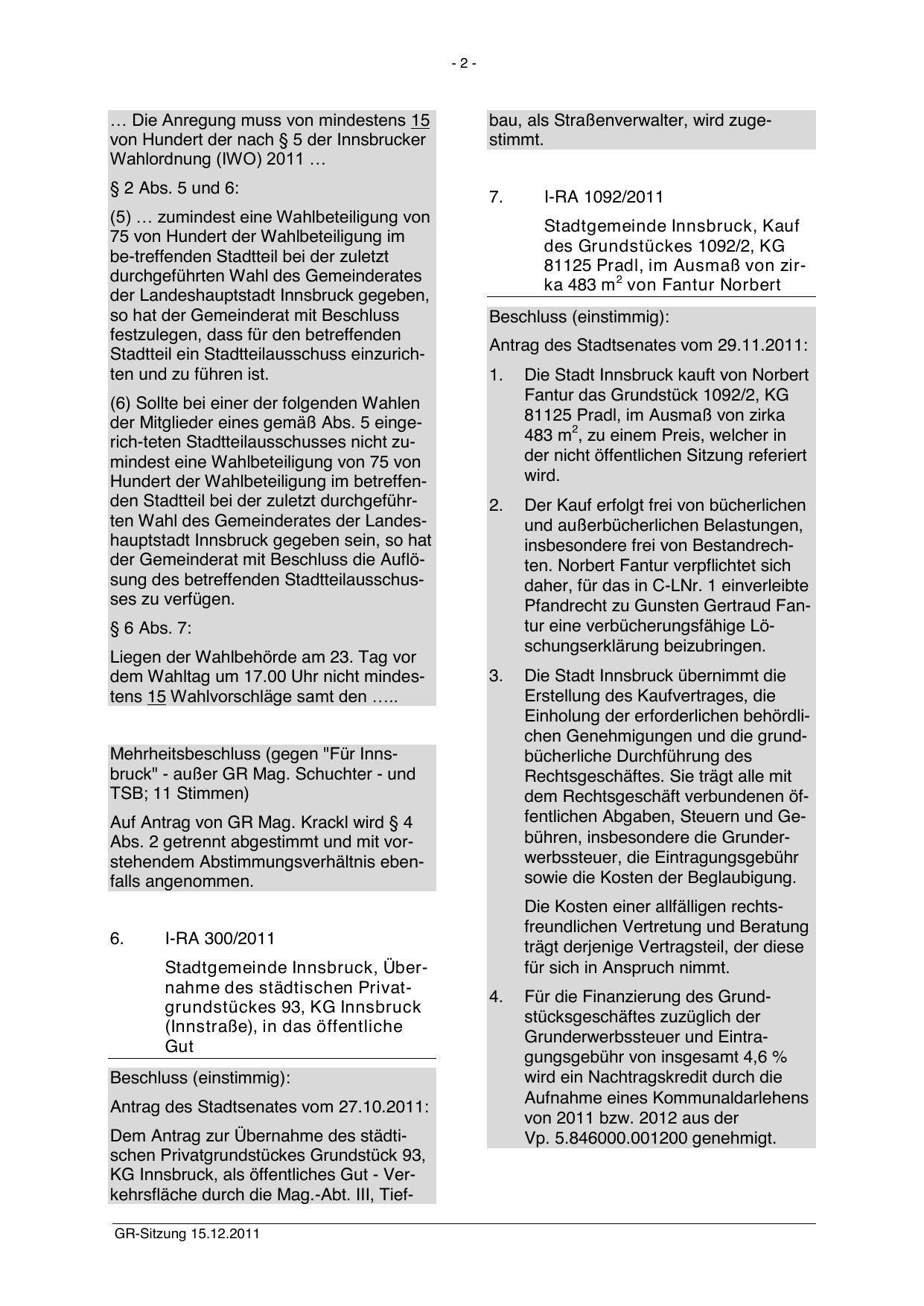 Mehrheitsbeschluss (gegen "Für Innsbruck" - außer GR Mag. Schuchter - und