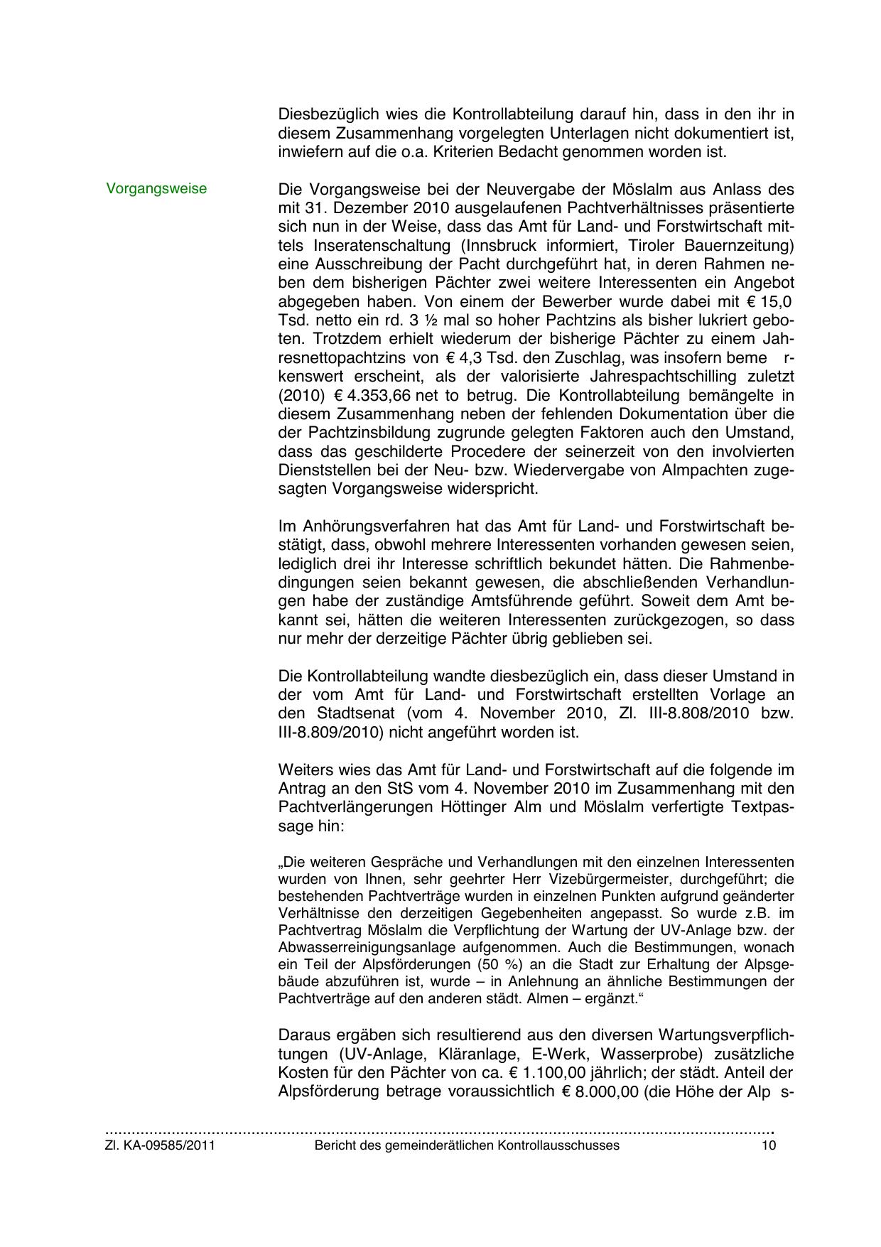 Pachtverlängerungen Höttinger Alm und Möslalm verfertigte Textpassage hin: