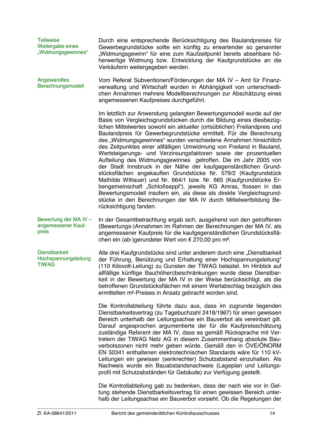 zuständige Referent der MA IV, dass es gemäß Rücksprache mit Vertretern der TIWAG Netz AG in diesem Zusammenhang absolute Bauverbotszonen nicht mehr geben würde. Gemäß den in ÖVE/ÖNORM