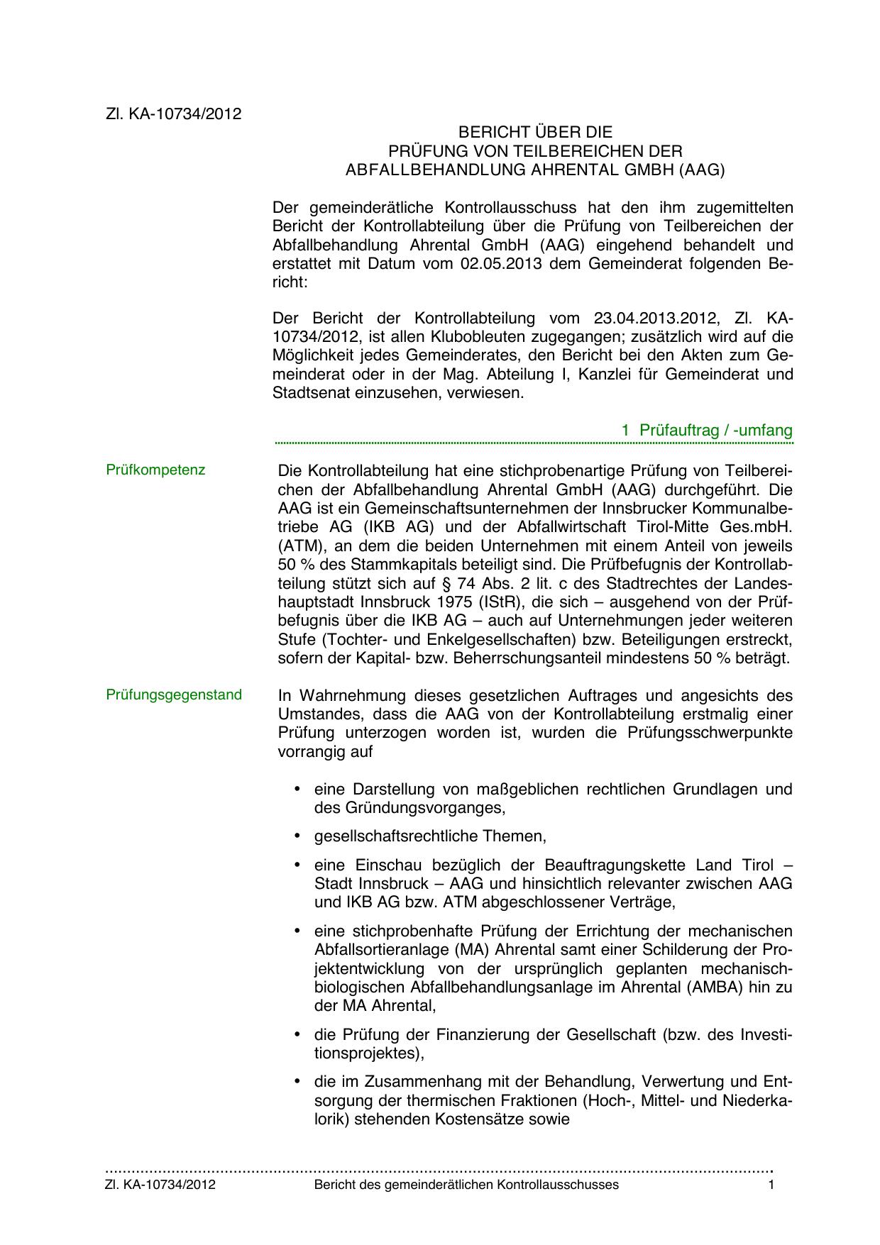 Stadt Innsbruck – AAG und hinsichtlich relevanter zwischen AAG