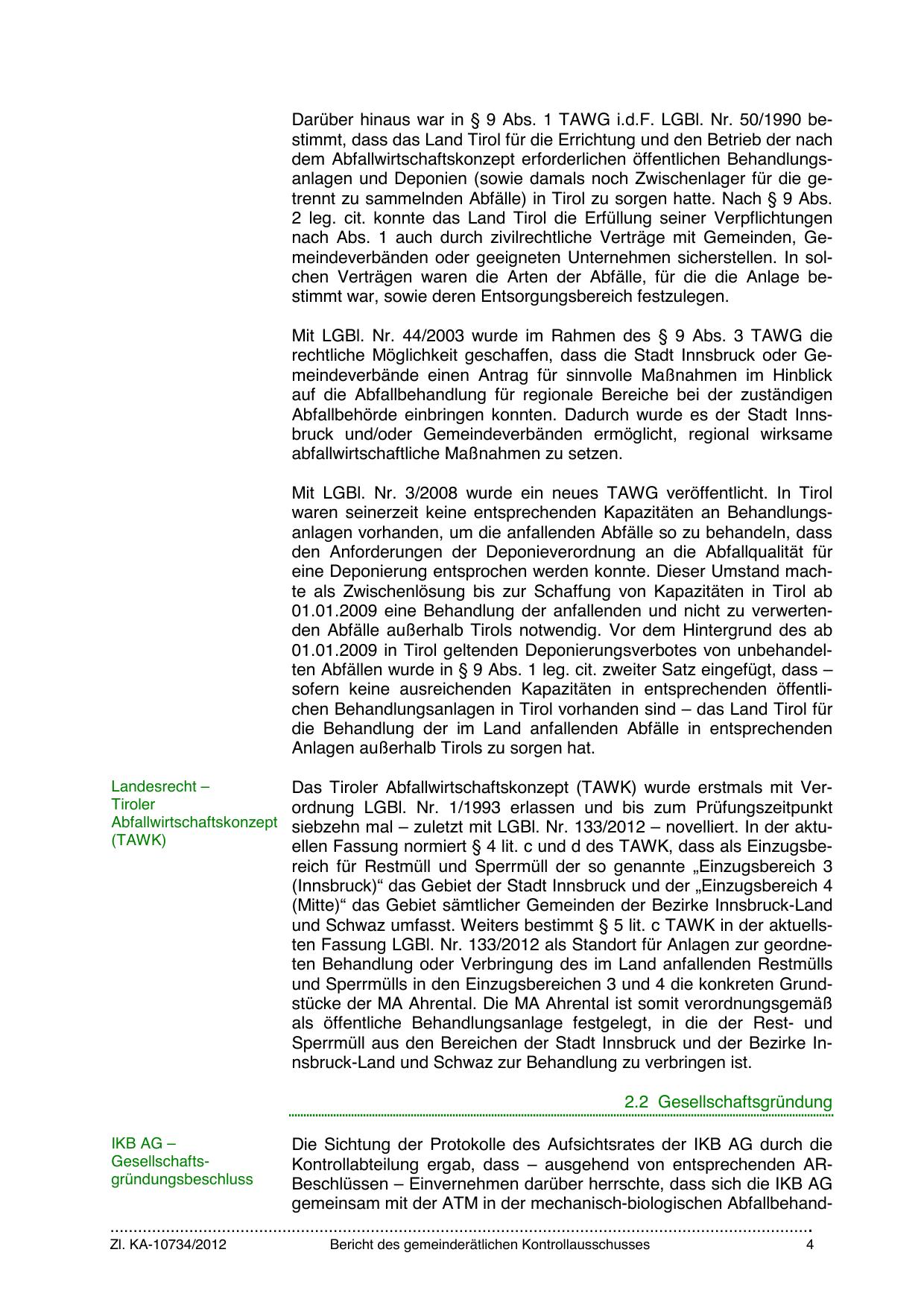 Abfallbehörde einbringen konnten. Dadurch wurde es der Stadt Innsbruck und/oder Gemeindeverbänden ermöglicht, regional wirksame