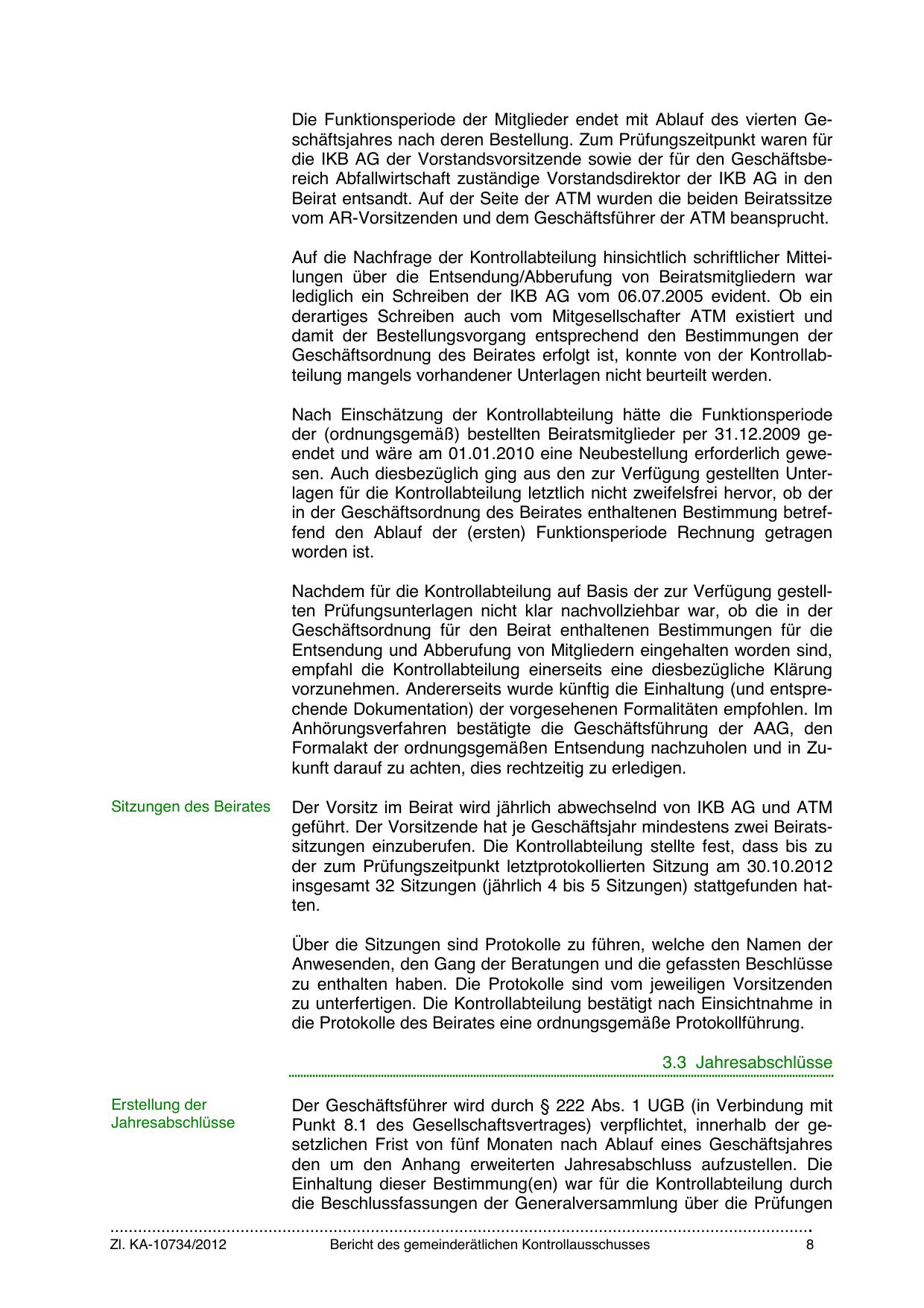 der (ordnungsgemäß) bestellten Beiratsmitglieder per 31.12.2009 geendet und wäre am 01.01.2010 eine Neubestellung erforderlich gewesen. Auch diesbezüglich ging aus den zur Verfügung gestellten Unterlagen für die Kontrollabteilung letztlich nicht zweifelsfrei hervor, ob der