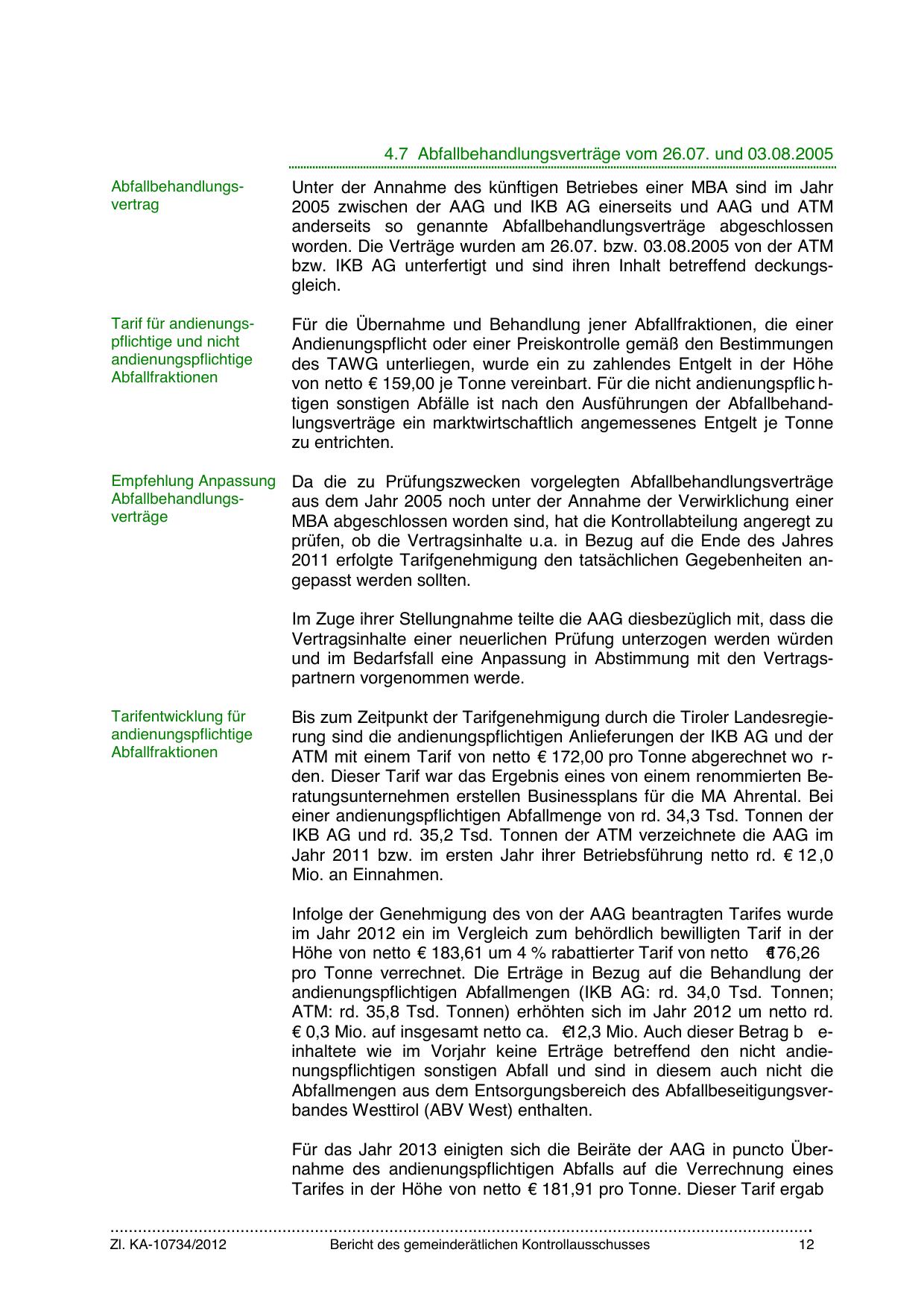 ATM mit einem Tarif von netto € 172,00 pro Tonne abgerechnet wo rden. Dieser Tarif war das Ergebnis eines von einem renommierten Beratungsunternehmen erstellen Businessplans für die MA Ahrental. Bei
