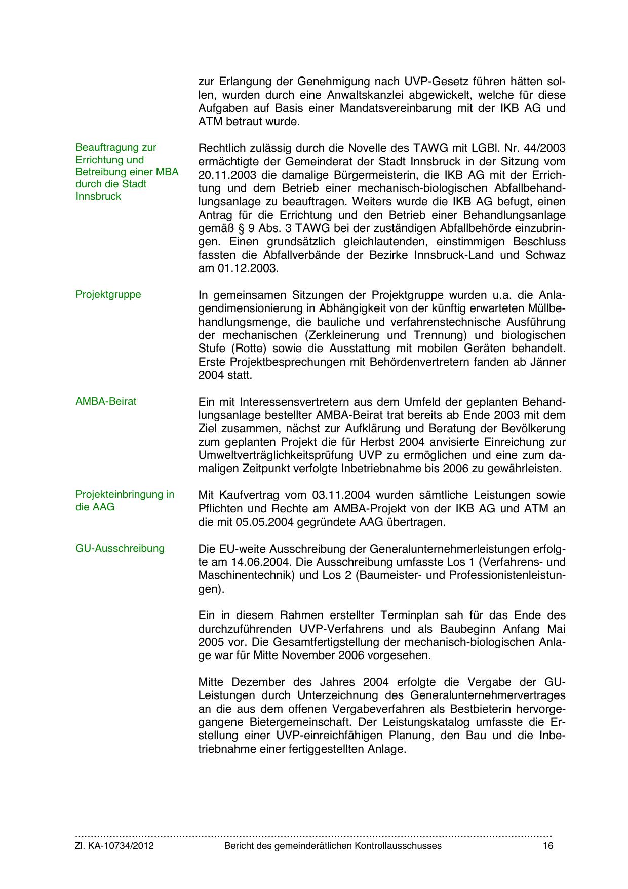 20.11.2003 die damalige Bürgermeisterin, die IKB AG mit der Errichtung und dem Betrieb einer mechanisch-biologischen Abfallbehandlungsanlage zu beauftragen. Weiters wurde die IKB AG befugt, einen