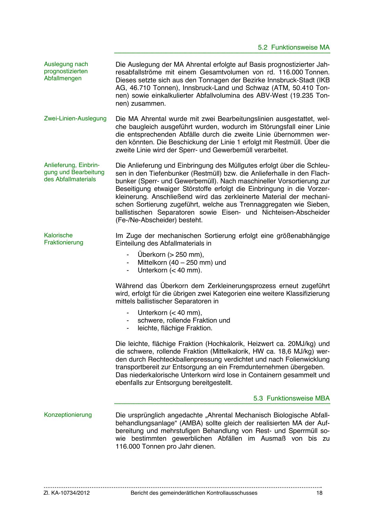 AG, 46.710 Tonnen), Innsbruck-Land und Schwaz (ATM, 50.410 Tonnen) sowie einkalkulierter Abfallvolumina des ABV-West (19.235 Tonnen) zusammen.