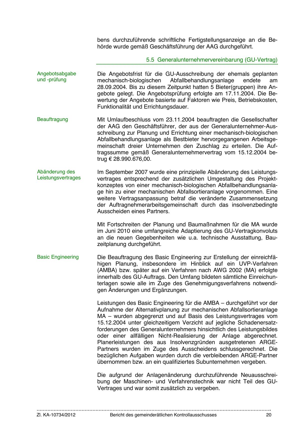 Abfallbehandlungsanlage als Bestbieter hervorgegangenen Arbeitsgemeinschaft dreier Unternehmen den Zuschlag zu erteilen. Die Auftragssumme gemäß Generalunternehmervertrag vom 15.12.2004 betrug € 28.990.676,00.