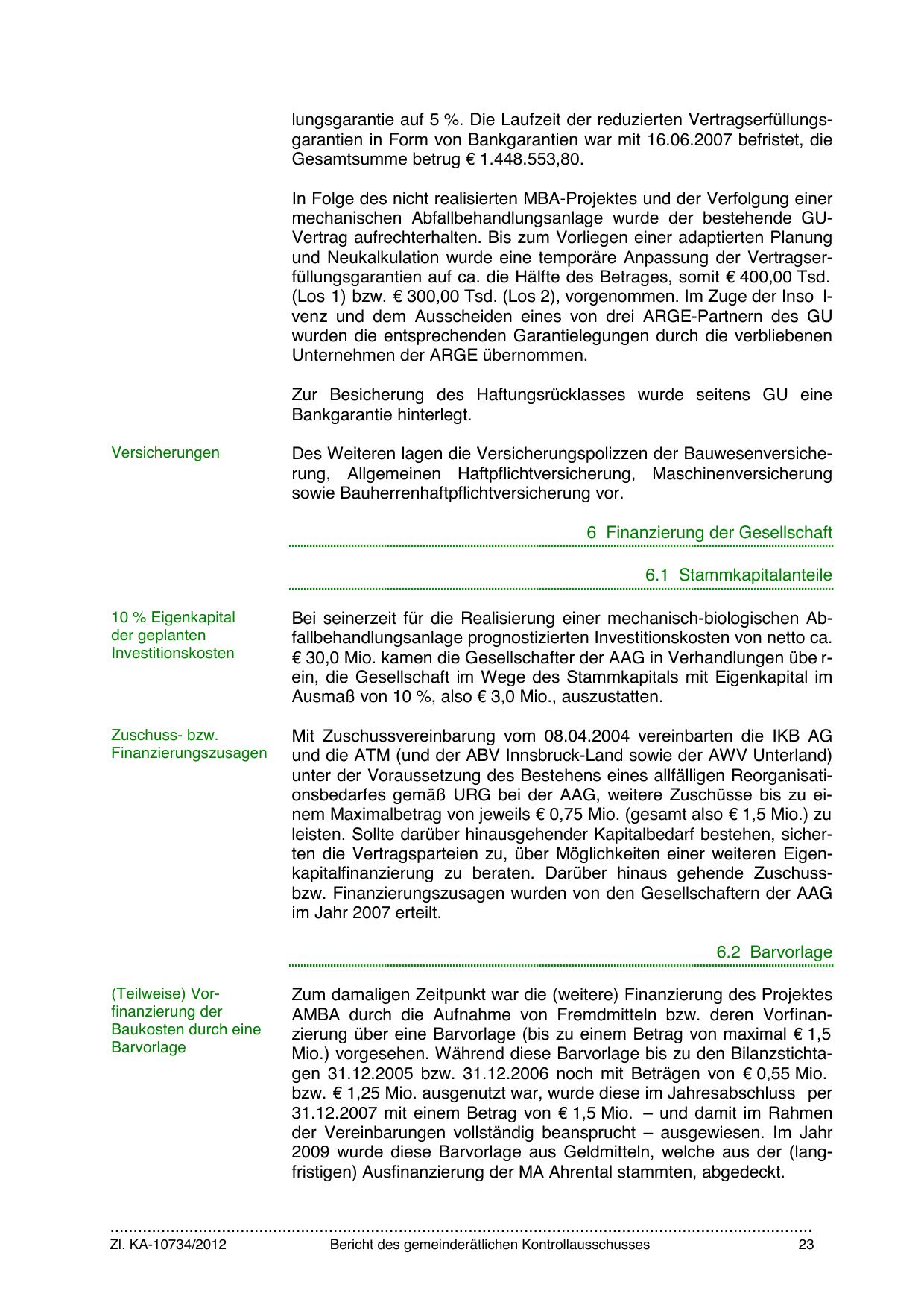 mechanischen Abfallbehandlungsanlage wurde der bestehende GUVertrag aufrechterhalten. Bis zum Vorliegen einer adaptierten Planung